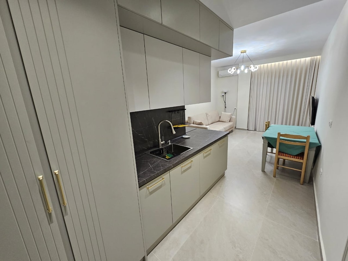 Un tout nouvel appartement avec un design agréable et relaxant vous fera vous sentir comme chez vous. Juste à côté du New Bazaar, à 6 minutes du centre. Près du centre commercial Toptani, des bâtiments gouvernementaux, des musées, Opéra, centre médical. Appartement de 110 m2, 3e étage avec ascenseur, entièrement meublé, avec 1 chambre (lit double) 1 chambre (2 lits simples), cuisine (four, lave-vaisselle, etc.) salon spacieux, 2 toilettes, parking gratuit inclus. TV, climatisation dans chaque chambre, lave-vaisselle, lave-linge.