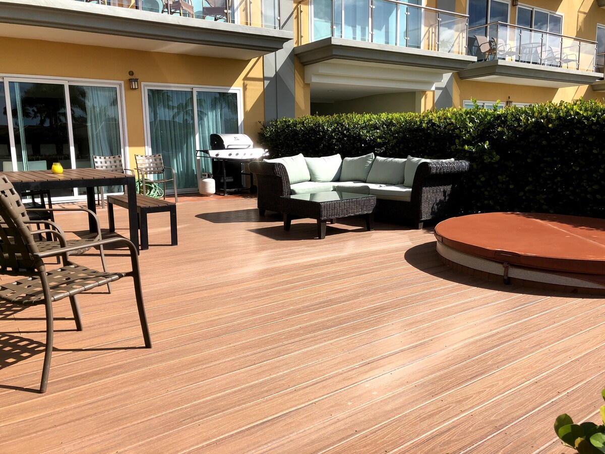 Bienvenue dans notre superbe appartement de luxe 2 br / 2 ba avec vue imprenable sur l'océan dans le centre-ville d'Aruba. Il est à 10 minutes en voiture de l'aéroport et à distance de marche de nombreux bars, magasins et restaurants. Profitez d'équipements tels que la piscine à débordement, le jacuzzi et la salle de sport. L'appartement offre tout ce dont vous avez besoin pour tirer le meilleur parti de vos vacances (wifi gratuit, Netflix, parking privé, sécurité 24h/24, serviettes de plage, etc.)