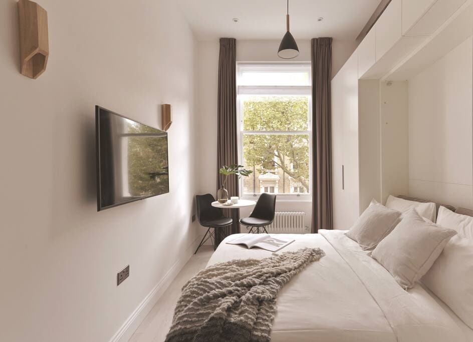 Élégant appartement au premier étage près du métro Fulham Broadway vous donnant un accès polyvalent à tout le centre de Londres. Chambre spacieuse avec lit Super King et salle de douche attenante avec douche à effet pluie et éclairage. Une salle de réception lumineuse et aérée avec un canapé-lit (pour les voyageurs supplémentaires) et une télévision avec Netflix. Une cuisine entièrement équipée avec four, plaque de cuisson à convection, micro-ondes et machine à café Nespresso. Une terrasse orientée sud-ouest donnant sur des arbres matures qui mènent au parc. Une connexion Wi-Fi est disponible.