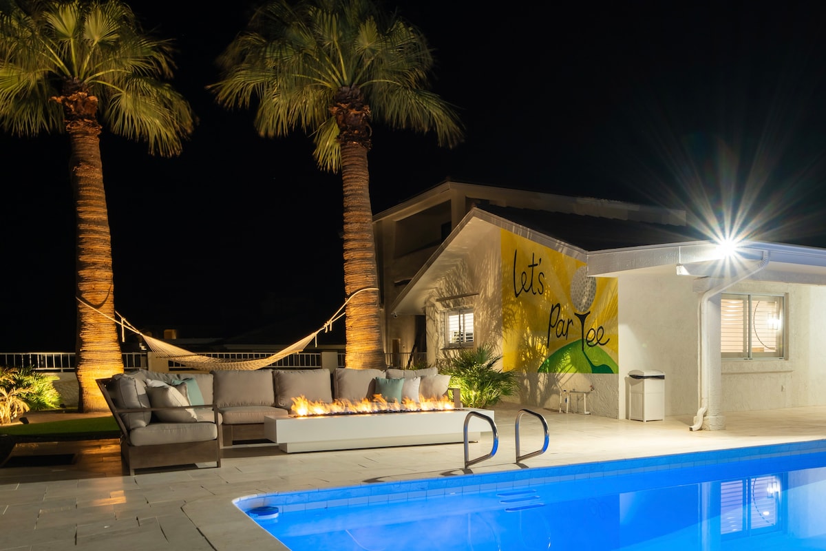 ⭐️ 3000 pieds carrés avec design et décor de luxe À quelques ⭐️ minutes de Riviera Marina et du centre-ville ⭐️ Lit king size ⭐️ Hamac, jeux et putting green ⭐️ Terrain de golf et vue sur la montagne ⭐️ Situé sur le deuxième vert Notre maison de vacances intérieure entièrement rénovée est une véritable expérience à Lake Havasu City Près de 3 000 pieds carrés et de la place pour 14 personnes, le Clubhouse ressemble à un complexe hôtelier 5 étoiles et ressemble à un logement conçu avec amour. Les équipements comprennent une piscine, un jacuzzi, un hamac, un putting green et un brasero.