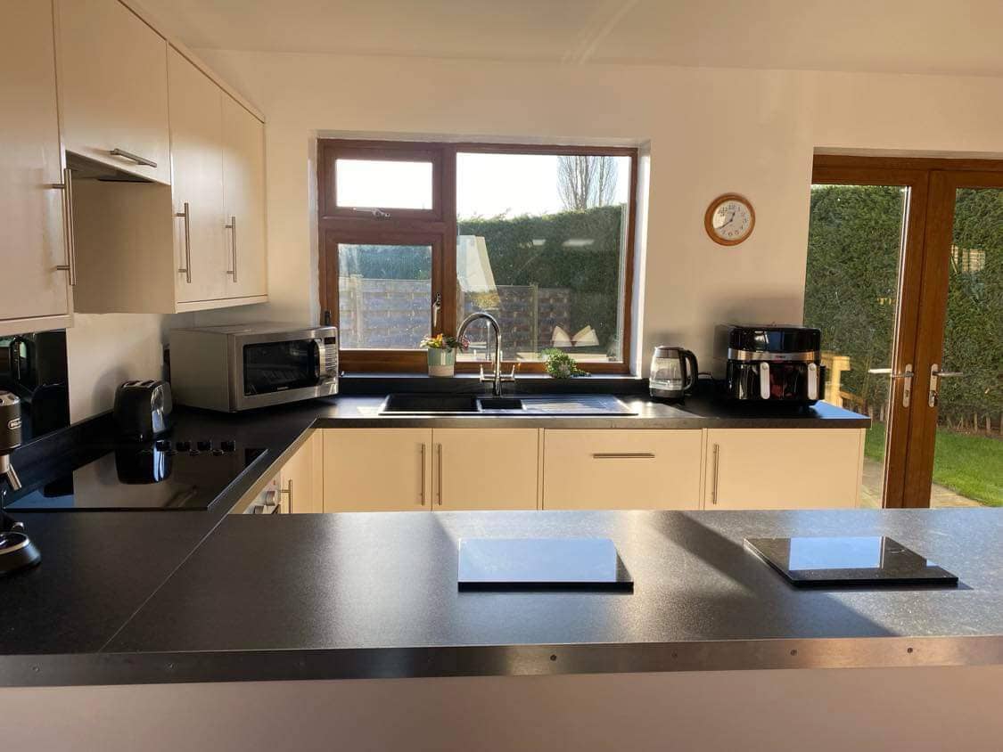 Enjoy sociable and spacious open-plan living in this redesigned and fully renovated single storey home. Beautifully decorated with full glass doors leading onto patio and garden with bbq and firepit and patio furniture for 9. The property features an elegant kitchen, master bedroom with en-suite and 3 further double bedrooms and separate utility space with washer and dryer. With parking for 3 cars there is plenty of outdoor and indoor space to make your stay comfortable and welcoming.