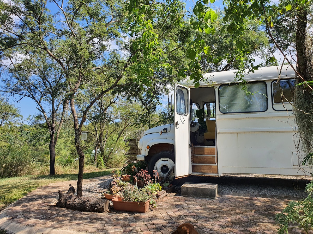 Enjoy a stay in a 1973 converted school bus that has all the comforts of home and touches of luxury. Self-contained accommodation for two in the bushveld with magnificent views and the sounds of nature. All of this is situated in agricultural lands, 15 minutes away from the centre of Nelspruit. The hosts have 4 large dogs that are well socialised and enjoy meeting new people. The property is a self-sustaining homestead where the hosts grow their own vegetables, farm honey and produce eggs.