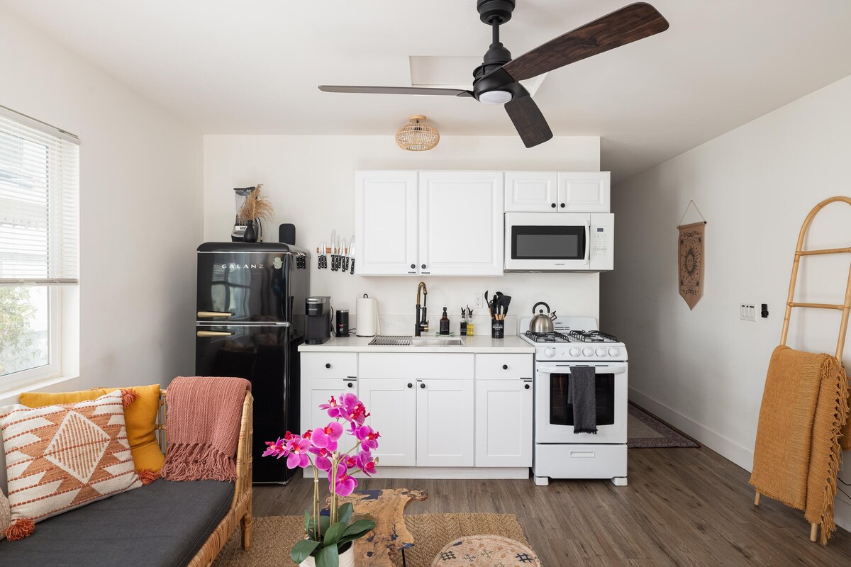 La micro-maison a été conçue et inspirée par les vibrations modernes du désert de Valle de Guadalupe, la région viticole de la Basse-Californie, au Mexique, à seulement une heure au sud. La micro-maison est à seulement 300 mètres de l'hôtel Lafayette récemment rénové contenant des restaurants primés pour le petit-déjeuner/déjeuner/dîner et un café ! Marchez jusqu'au dîner à North Park ou University Heights, les deux quartiers sont connus pour leurs restaurants, bars, magasins et plus encore ! La climatisation de la fenêtre refroidit l'endroit en quelques minutes seulement.