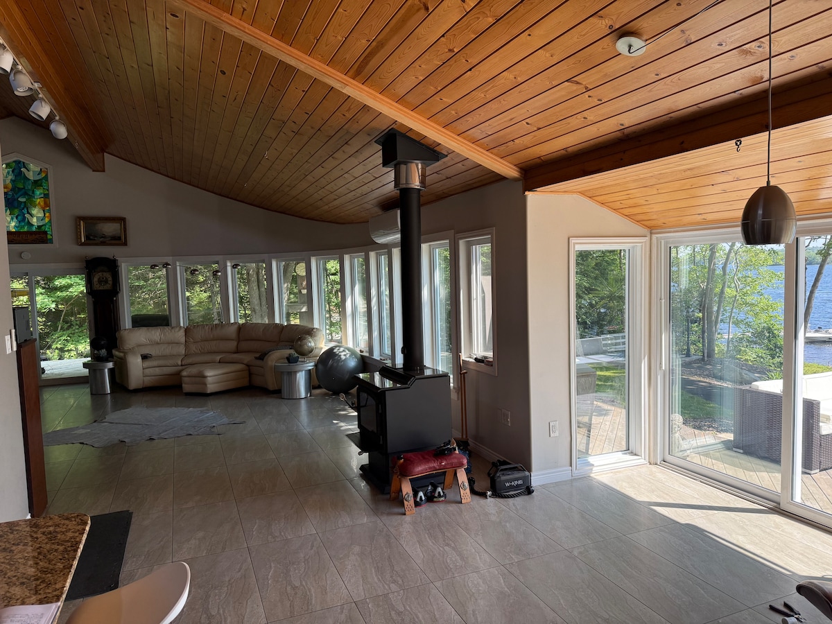Bienvenue dans notre chalet au bord du lac sur le mont Uniacke, à quelques minutes des commerces, des restaurants et des sentiers. Niché sur le magnifique lac Pentz, profitez d'une cour arrière spacieuse avec un quai baignable, des kayaks, un jacuzzi et des sièges extérieurs. Un barbecue est à votre disposition de mai à octobre. À l'intérieur, détendez-vous dans un espace de vie ouvert moderne avec une grande télévision, un coin repas et une cheminée électrique. À l'étage, vous trouverez trois chambres queen size, une salle de bain complète, ainsi qu'une deuxième salle de bain complète et une buanderie au niveau principal.