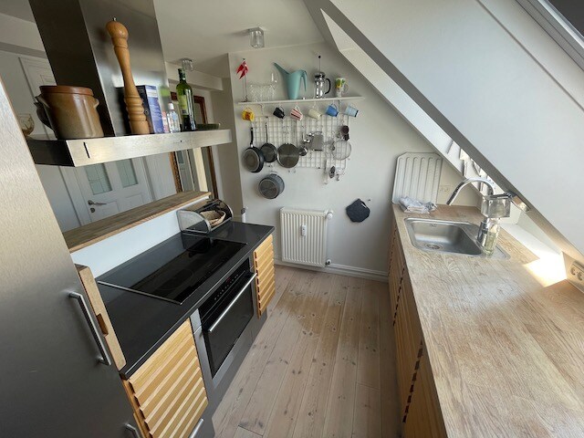Maison à colombages des années 1700 au cœur de la vieille ville de Nyborg. La maison a été restaurée dans le respect de sa valeur de préservation, et c'est comme entrer dans une aventure H. C. Andersen avec des équipements modernes disponibles. Les fenêtres du salon donnent sur les douves, la bibliothèque et le sommet du château, et dans la cour, vous pourrez vous détendre à l'ombre des cerisiers. Dans la même rue, vous trouverez le musée Nyborg et le bistro Apoli, et sur la place, les enfants peuvent tremper leurs orteils dans la fontaine locale.