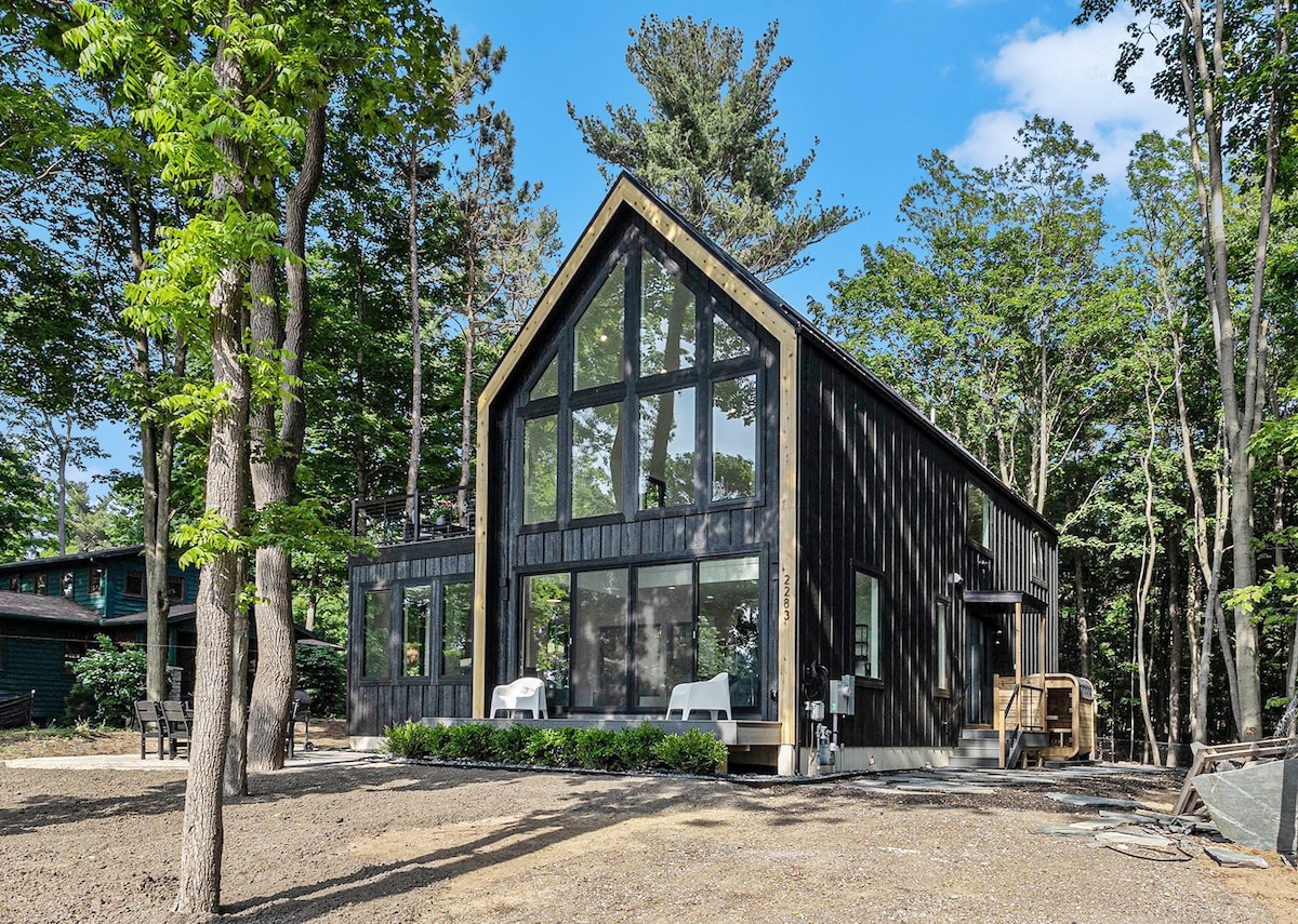 Détendez-vous dans ce logement calme et élégant. Niché parmi les arbres, il offre une escapade tranquille loin du chaos de la vie, vous permettant de vous ressourcer et de vous renouveler. La résidence principale est à environ 400 pieds de la cabane. La cabane est isolée et pourtant proche des attractions locales, des restaurants, des pistes cyclables et des sentiers naturels. Le chalet dispose d'un total de 420 pieds carrés d'espace de vie avec 280 pieds carrés au rez-de-chaussée et un loft de 140 pieds carrés.