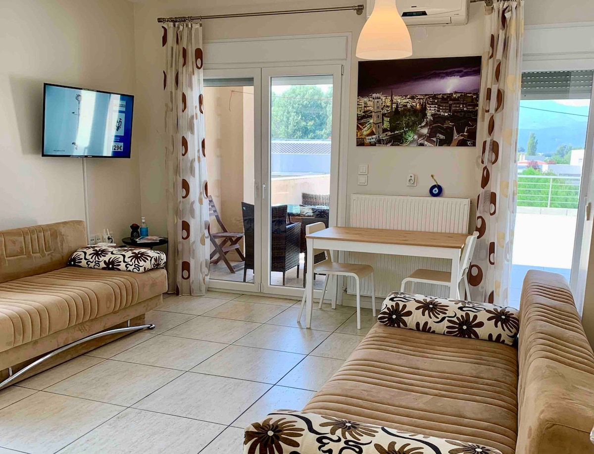Choisissez cet espace élégant pour un séjour spécial. Appartement neuf de 60 m², deux chambres, élégamment décoré, idéal pour les familles et les voyageurs individuels. Le logement spacieux et bien équipé ainsi que les hôtes Giorgos et Maria garantissent un séjour inoubliable.