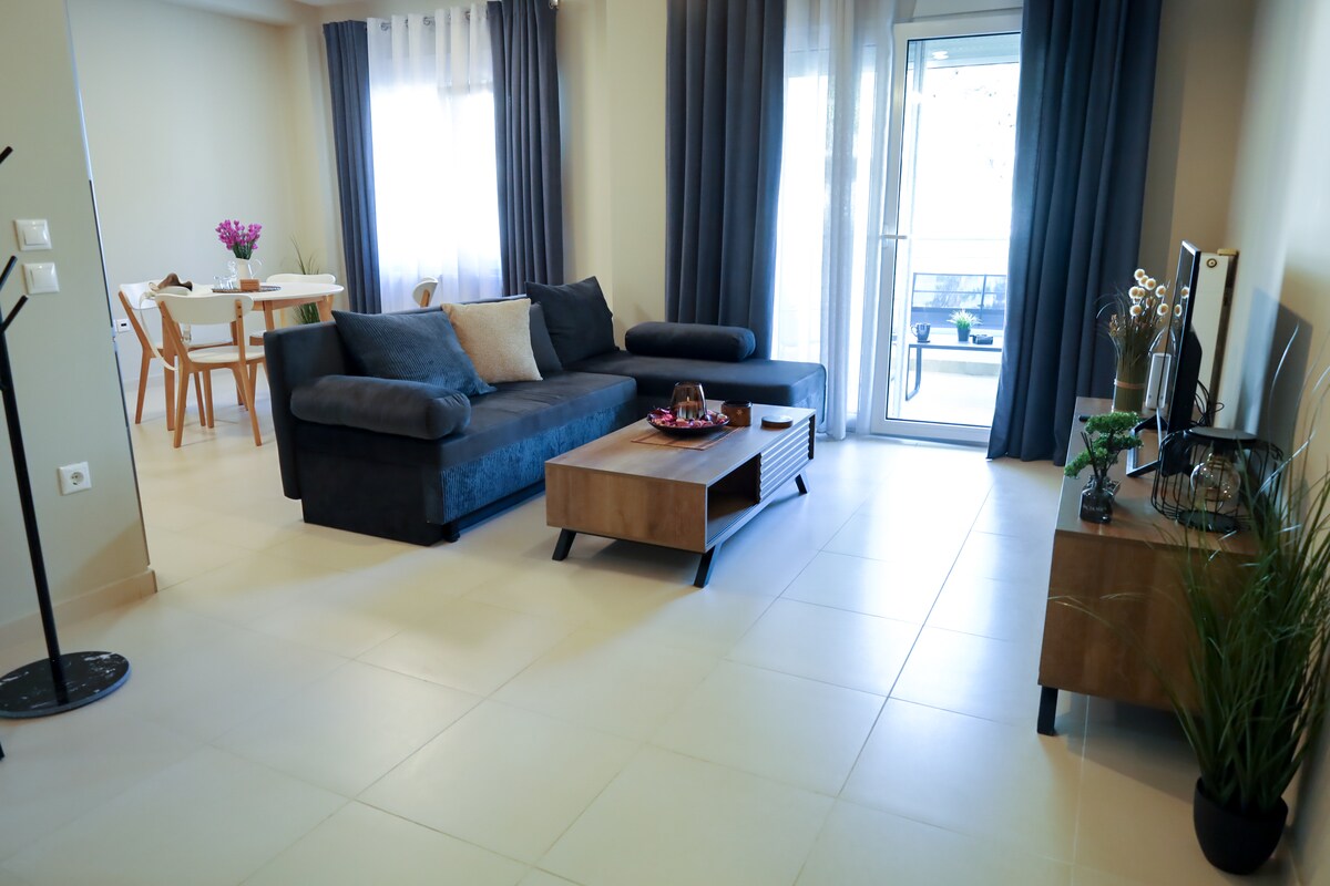 Un appartement spacieux (55 m²), propre, lumineux et frais en rez-de-chaussée avec un magnifique jardin. Il est situé juste à côté d'un centre sportif public avec une aire de jeux, et la plage populaire de Kalamitsa n'est qu'à 250 m à pied. Le centre-ville (et le musée archéologique) est à 2,5 km et est facilement accessible en transports en commun (un arrêt de bus est à 100 m de la maison). Le site archéologique de Philippi est à 14 km et l'aéroport de Kavala est à 35 km.