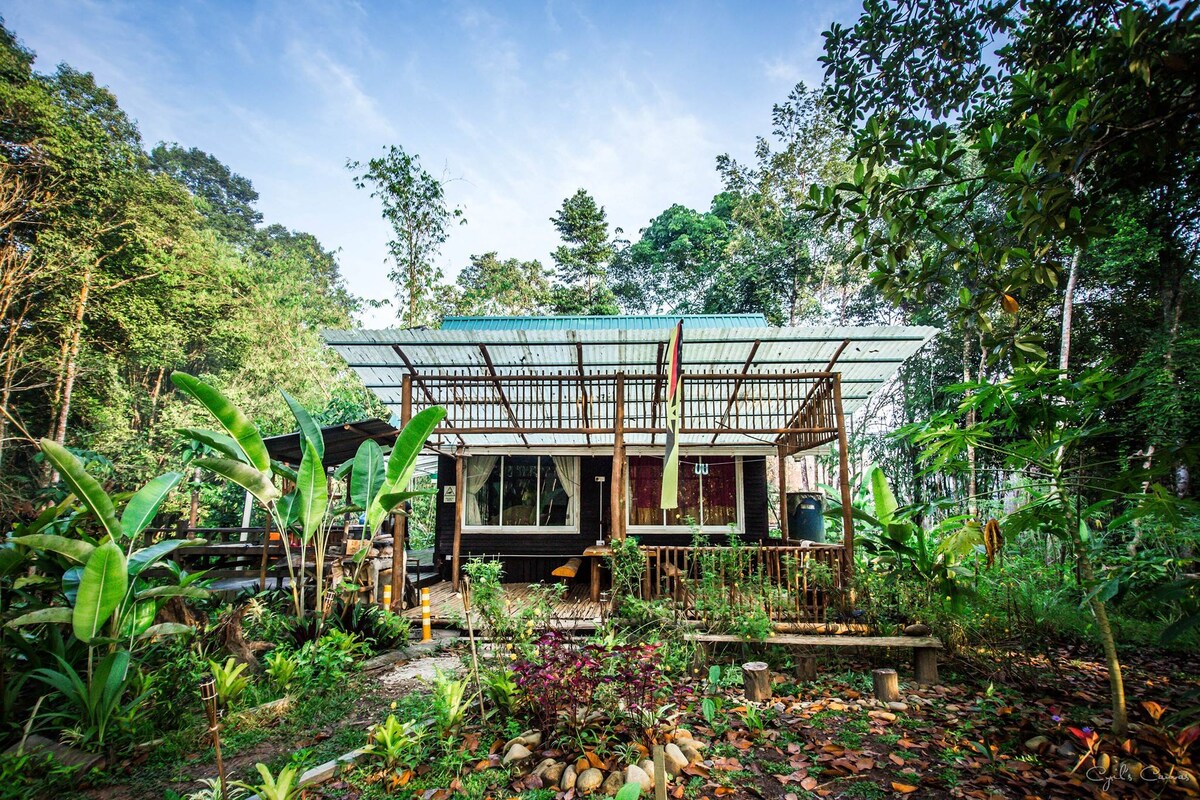 Une petite maison sur un terrain paisible au pied du Mont Majestueux Kinabalu. Profitez d'un barbecue sous les étoiles la nuit en écoutant le son de la nature et admirez la vue sur le mont Kinabalu le matin.