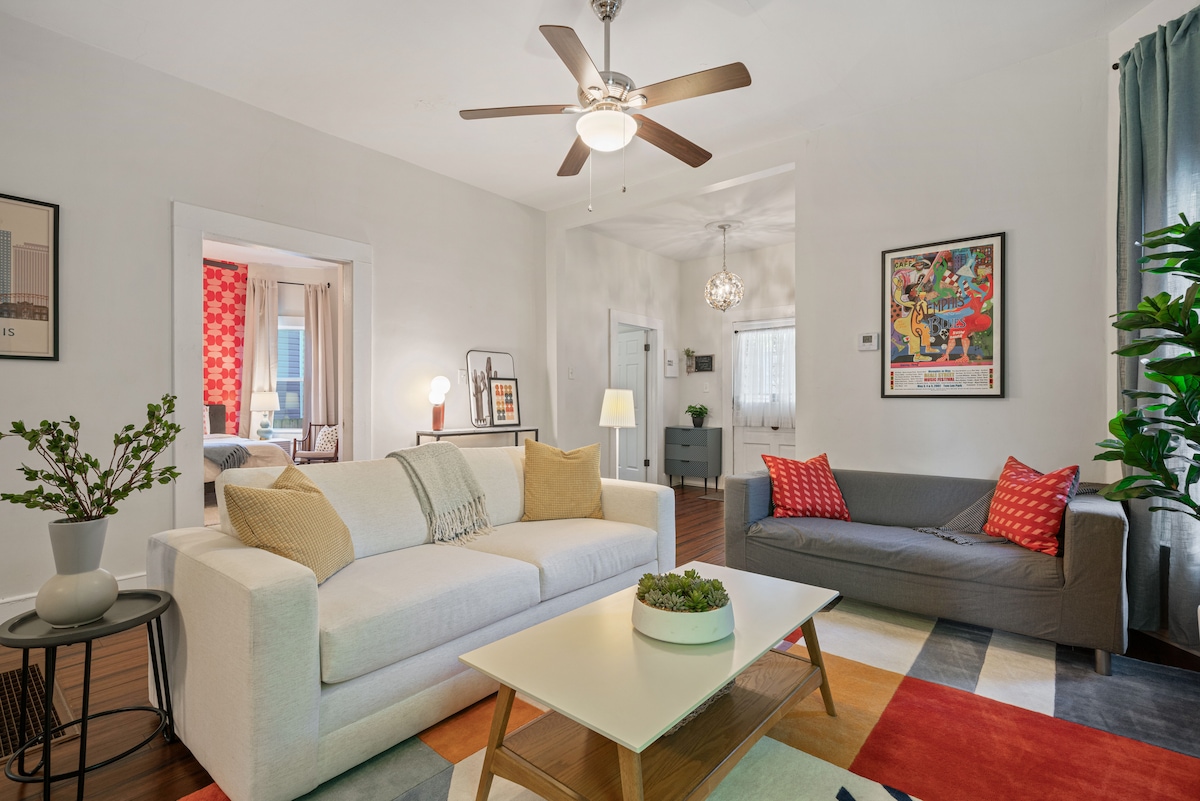 Cet élégant appartement en copropriété au cœur du quartier animé de Cooper-Young présente un design de luxe moderne avec des plafonds de 10 pieds, une entrée et un parking sécurisés, et une cuisine entièrement équipée. Profitez de la commodité d'un lave-linge et d'un sèche-linge dans l'appartement, d'un lit king size moelleux, de téléviseurs connectés et d'une connexion Wi-Fi rapide. Vous êtes entouré de plus de 30 restaurants, cafés et magasins à 1–2 minutes à pied. Overton Square est à quelques pas et le centre-ville de Memphis (Beale Street et FedExForum) est à 10 minutes en voiture.