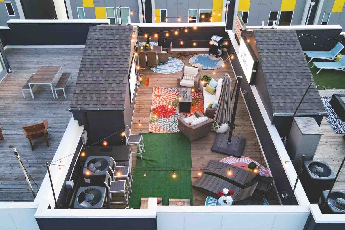 Bienvenue dans votre escapade à Nashville construite pour des séjours de groupe inoubliables ! Cette toute nouvelle maison de luxe de 4 chambres et 4 salles de bain s'étend sur 3 étages + une terrasse privée sur le toit avec vue sur la ville. Ce spot coche toutes les cases ! - Spa privé - Peut accueillir confortablement jusqu'à 12 personnes - Téléviseurs intelligents dans chaque chambre - Cuisine entièrement équipée et salon ouvert - Parking gratuit + accès facile à Uber - 10-12 minutes de Broadway et du centre-ville de Nashville - Parfait pour les groupes d'enterrement de vie de jeune fille, les grandes familles et les escapades en ville musicale