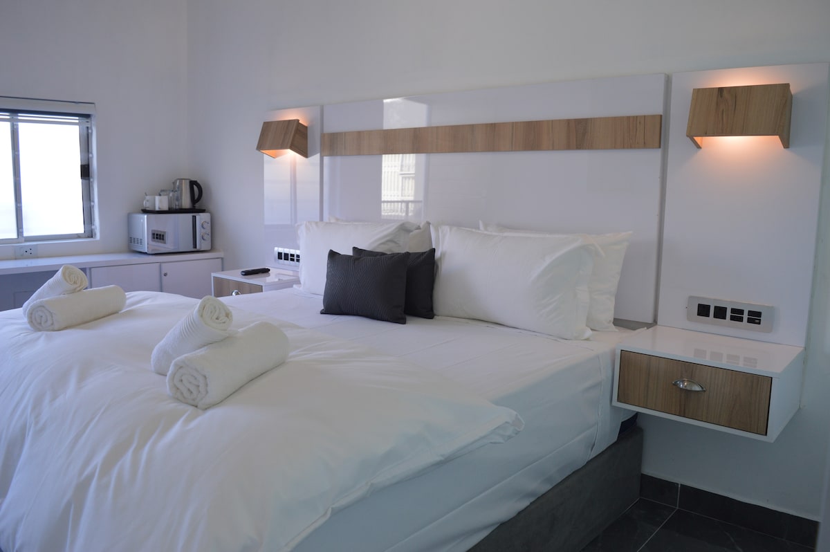 Un confortable appartement pour 2 personnes en plein centre de Walmer. Proche de la 6e avenue et du centre commercial Walmer Park. L'aéroport est également à proximité. Offre un parking couvert gratuit, une entrée privée sécurisée, un patio extérieur et un coin salon, une kitchenette complète, une salle de bain complète et un lit king size. Parfait pour un agréable séjour !