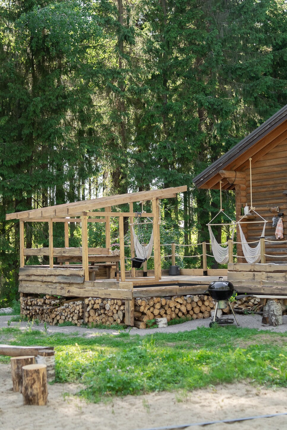 Hirsimökki on remontoitu uniikisti ja piha on täynnä tekemistä! Käytössänne on heti valmis-poreallas (2 aik. + 2 las.) & keinusauna! Hulppea terassi ja loftnet. Kesäisin beach volley kenttä ja olympiatrampoliini. Suosittu Hirvikartano sijaitsee 130km päässä. ALAKERTA: Keittiö, olohuone ja sauna YLÄKERTA: 2 makuutilaa 2:lla parvella Mökin alakerta 40 neliötä + terassi 20 neliötä. Wifi on! Täydellinen "getaway" luonnon rauhaan pariskunnalle tai ystävien kesken! #kuuntelehiljaisuutta