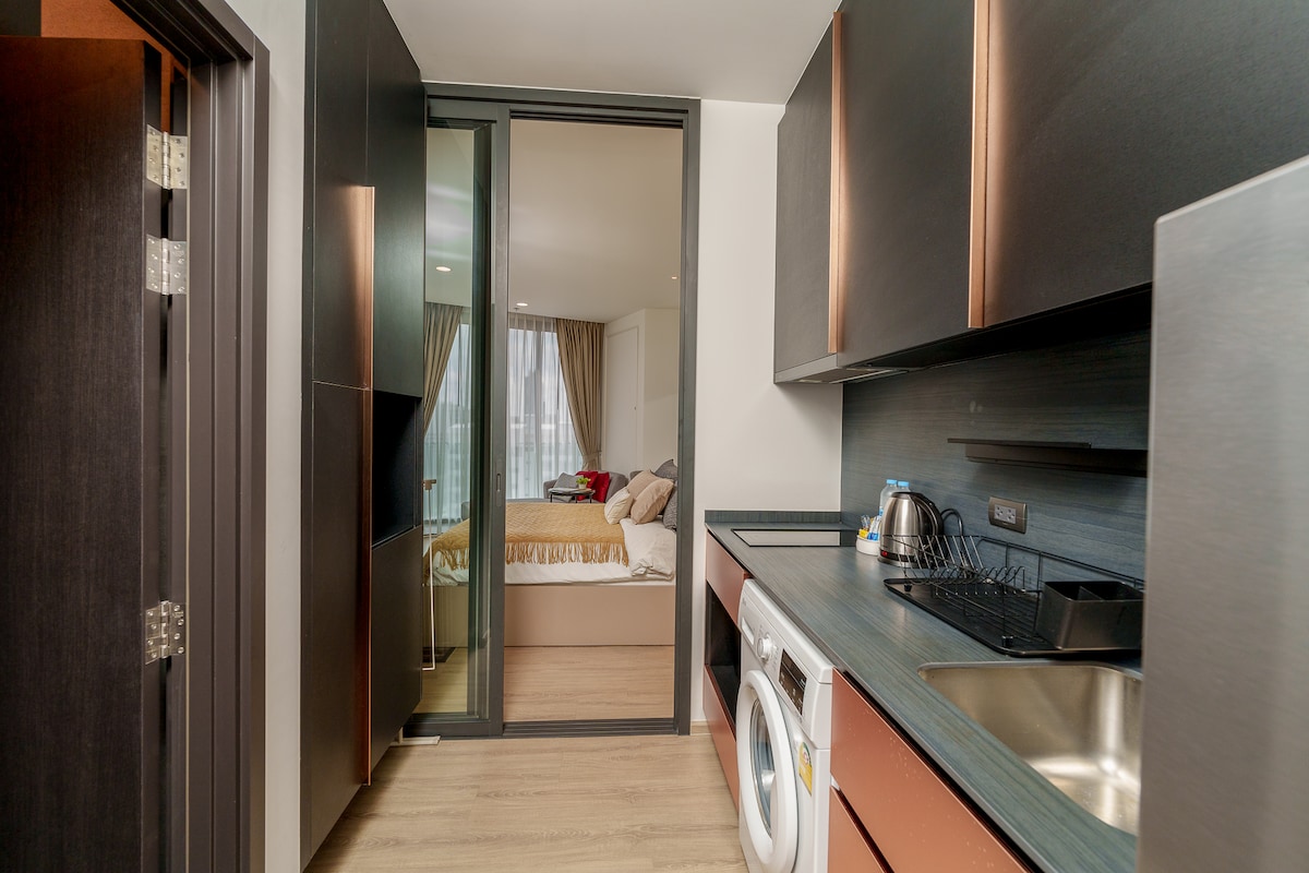 40e étage Studio de 26 m² (lit king size), avec une vue magnifique sur la mer Notre chambre se trouve dans la copropriété Unixx. - À 2 minutes à pied des rues animées pour une cuisine locale savoureuse - à 7 min à pied de la grande jetée et de la piste de karting ; - À 10 min de la rue piétonne. - À 20 minutes à pied de la plage. - 2 piscines/sauna/salle de sport. - Superbe vue sur le jardin suspendu - À 31 km de l'aéroport international U-Tapao Rayong-Pattaya.