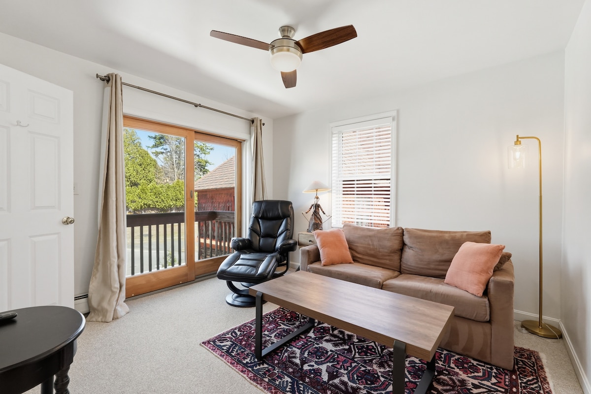 Lumineux, récemment rénové, luxueusement meublé, appartement bordé d'arbres à quelques pas du centre-ville animé de Northampton. Portes vitrées coulissantes ouvertes sur un joli balcon donnant sur les arbres et les toits. Plan d'étage ouvert, cuisine boucherie-repas, lave-vaisselle, salon avec projecteur de cinéma, système de cinéma maison, canapé-lit queen. Chambre Queen spacieuse avec TV HD 42", coin bureau privé. Accès à la cour avec table à manger extérieure, piscine chauffée de 36 pieds, salle de sport de jeux. Lave-linge/sèche-linge au sous-sol. Stationnement hors rue.