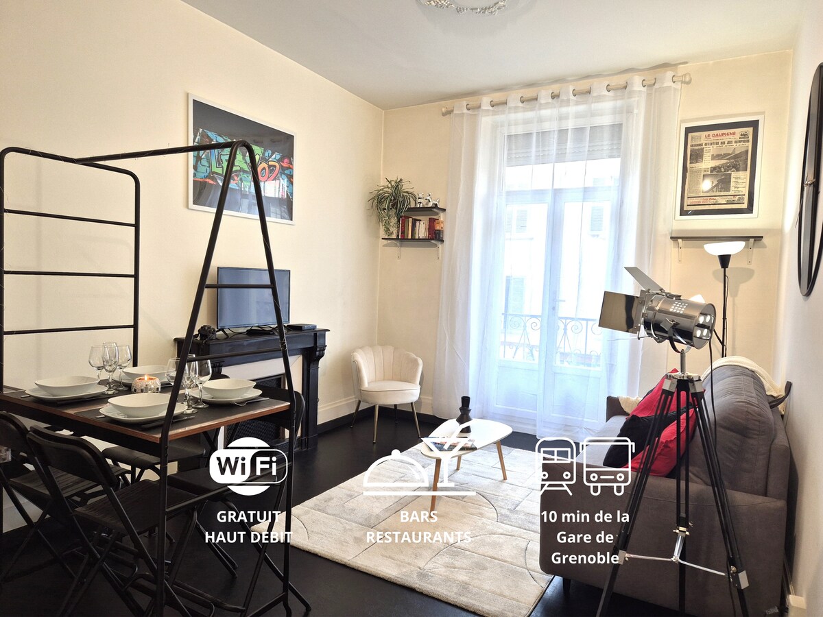 Profitez de notre appartement situé au CŒUR de Grenoble durant votre séjour. Logement rénové, spacieux, calme et lumineux. Le calme au cœur de la ville. EXTRAORDINAIRE Ce logement est situé dans une zone très dynamique et très centrale! A moins d'une minute de la salle de Sport Fitness Park, GALERIES LAFAYETTE, LA FNAC, tous les restaurants du Centre Ville, les rues piétonnes !! 🛏️Literie neuve et confortable Voyageurs respectueux, Soyez les bienvenus!!
