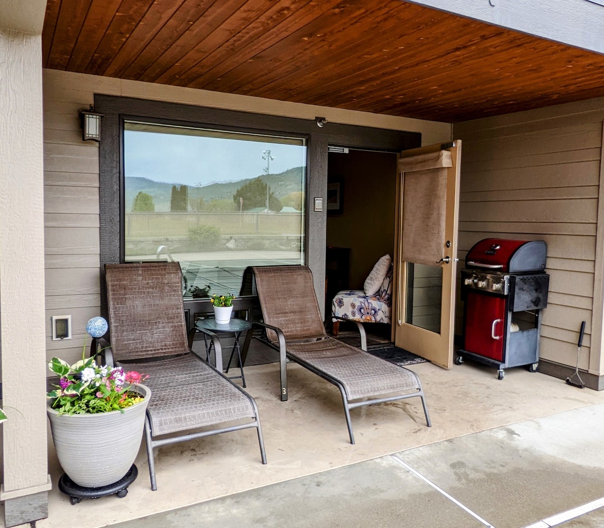 Studio chaleureux et confortable avec entrée privée et 500' de rivière à Carlton, WA. Lit Queen Size, WIFI, TV Dish Network, grille-pain, micro-ondes, cafetière, Keurig, réfrigérateur/congélateur de grande taille. Désolé, pas de cuisine à l'intérieur, il y a une plaque de cuisson au propane Blackstone sur la terrasse avec des ustensiles de cuisine. Douche de plain-pied avec portes vitrées. Terrasse privée avec sièges, foyer au propane (utilisable en hiver seulement), jacuzzi. Profitez de la cour, du hamac, cueillez des fruits frais (en saison), suivez le chemin qui mène à la rivière et pêchez (en saison).
