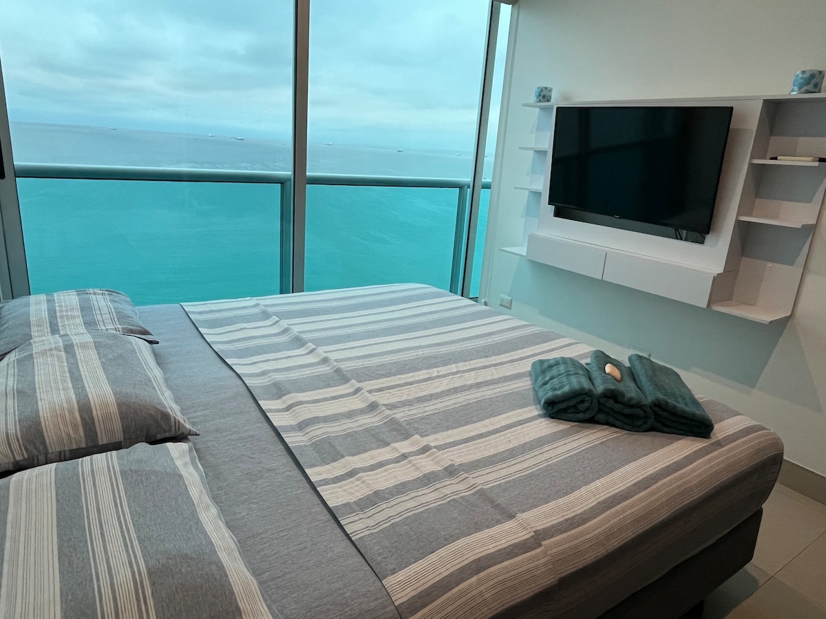El departamento tiene: cerradura inteligente y acceso con código, cocina, nevera, lavadora y secadora, horno,cocina, bebedero de agua La sala tiene TV de 60" 4K con dirextv Tv, apple TV, netflix, Wifi de alta velocidad 300 mb, un sofá cama, las cortinas son eléctricas, la habitación tiene sábanas, cobijas, cobertores, mantas y toallas nuevas , calentadores electricos, TV de 55" en el dormitorio y con un patio con sillas y parasol privado. Se implemento un vidrio acústico para confort auditivo