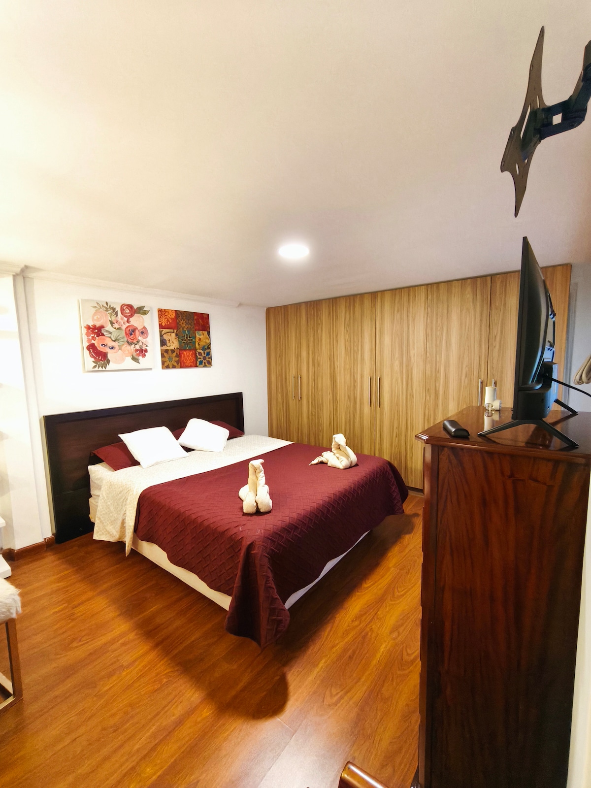 C'est une suite entièrement conçue pour recevoir des invités. Elle est équipée à 100 % pour couvrir tous les besoins des visiteurs. Elle est située dans l'un des meilleurs bâtiments de la ville. Elle dispose d'une piscine, d'un sauna, d'un jacuzzi, d'une salle de cinéma, d'une salle de sport et d'une terrasse avec barbecue. - Emplacement merveilleux - Près d'un centre commercial et de la zone exécutive - Toutes les installations. - Superbe vue sur la ville. - Parking. - Unique à Quito.