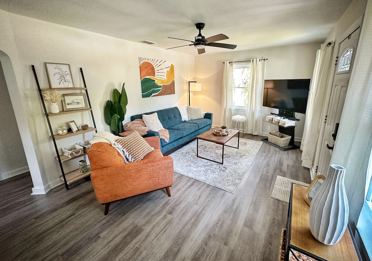 Votre maison loin de chez vous à St. Pete ! Notre bungalow est situé dans un quartier très prisé à seulement un mile du centre-ville animé. Entièrement rénové ; le charme des années 1930 demeure, mais avec une cuisine moderne entièrement équipée, une salle de bain élégante, des meubles/décorations et une terrasse privée. Planchers de bois franc remis à neuf, également. Les équipements comprennent : Allée pour 1 voiture Chambre avec lit King Size Canapé-lit Queen Size 2 téléviseurs connectés : applications en direct et en streaming Porche avant avec chaises à bascule Terrasse avec salle à manger extérieure Lave-linge et sèche-linge Des hôtes expérimentés :)