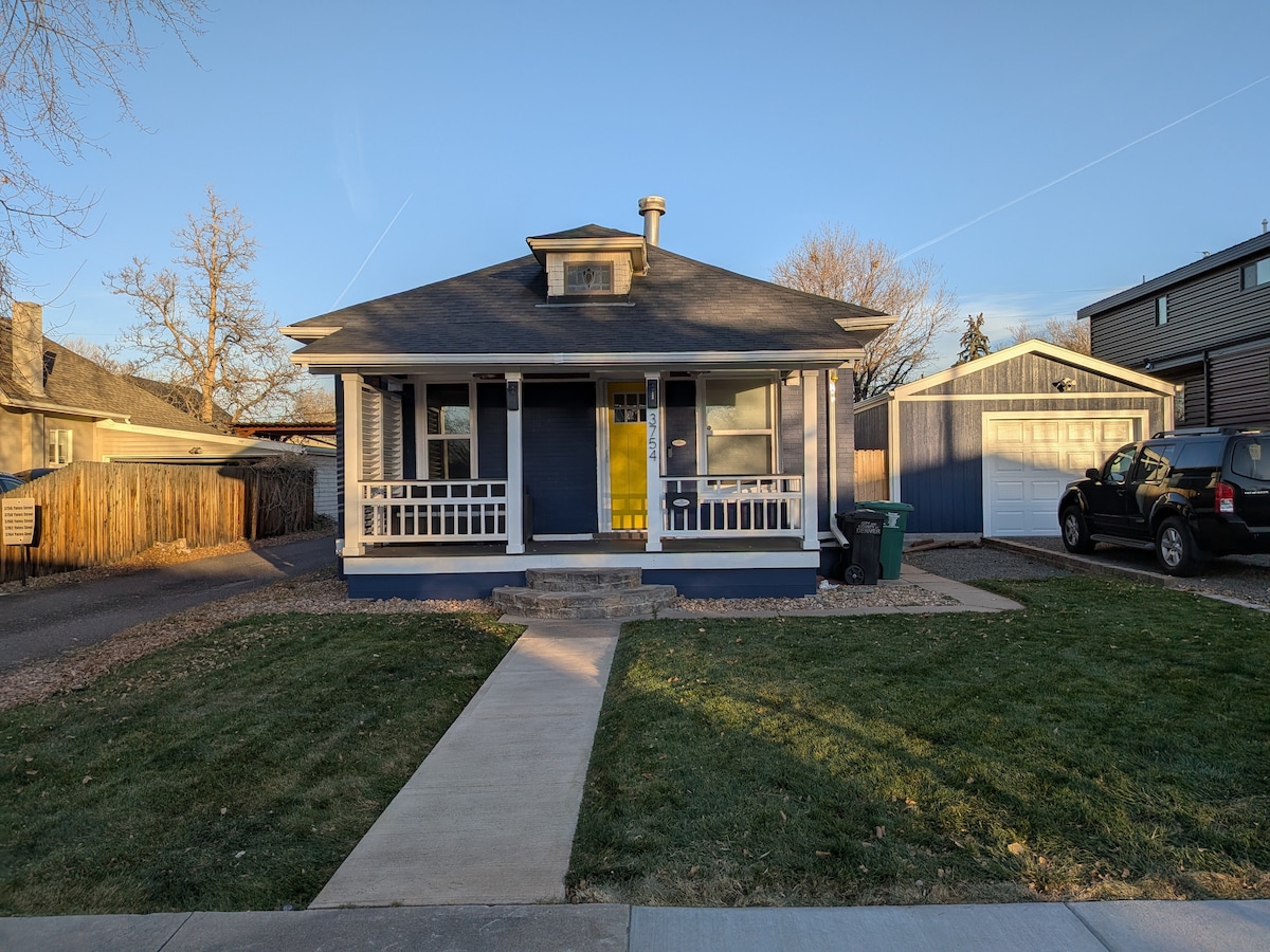 Maison zen dans un quartier calme avec de charmantes caractéristiques et une cour/patio parfait. Il y a 2 chambres, une salle de bain complète, une cuisine haut de gamme et un matelas gonflable queen size pour une 5e personne. Une place de parking réservée dans l'allée et quelques places dans la rue. À quelques minutes des restaurants, des magasins, de deux brasseries, de Beer Garden et du lac Sloans, et à 20 minutes de Red Rocks. Téléviseurs connectés dans le salon et la chambre d'amis ! ~Edgewater, Co Licence STR : 2018-01