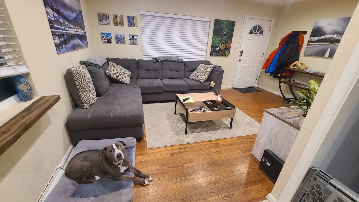 Make your way to a cozy, private guest suite on the 1st floor (basement) of an end unit row home with a heated patio. No shared spaces and completely private. Conveniently located so you can enjoy all the city of Denver has to offer! Just a short 5 min. walk to the Perry Street RTD train station giving you easy access to all stadiums, Union Station, downtown, and west to Golden. 5 min. walk to Sloans Lake, Alamo Draft House Cinema, restaurants, a brewery, and more!