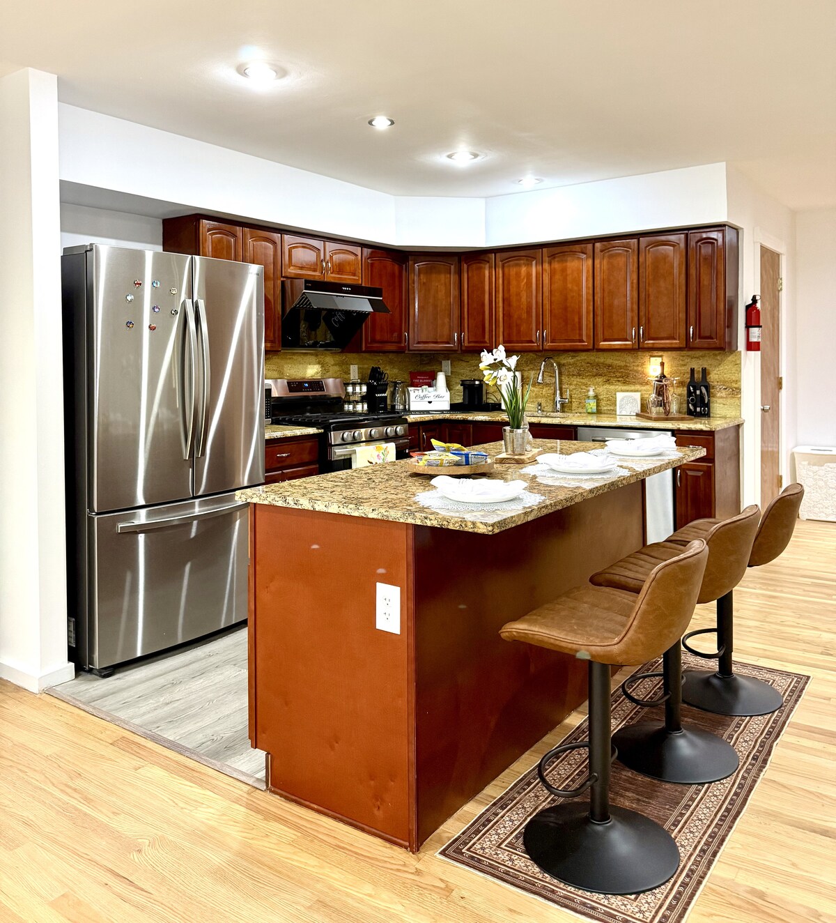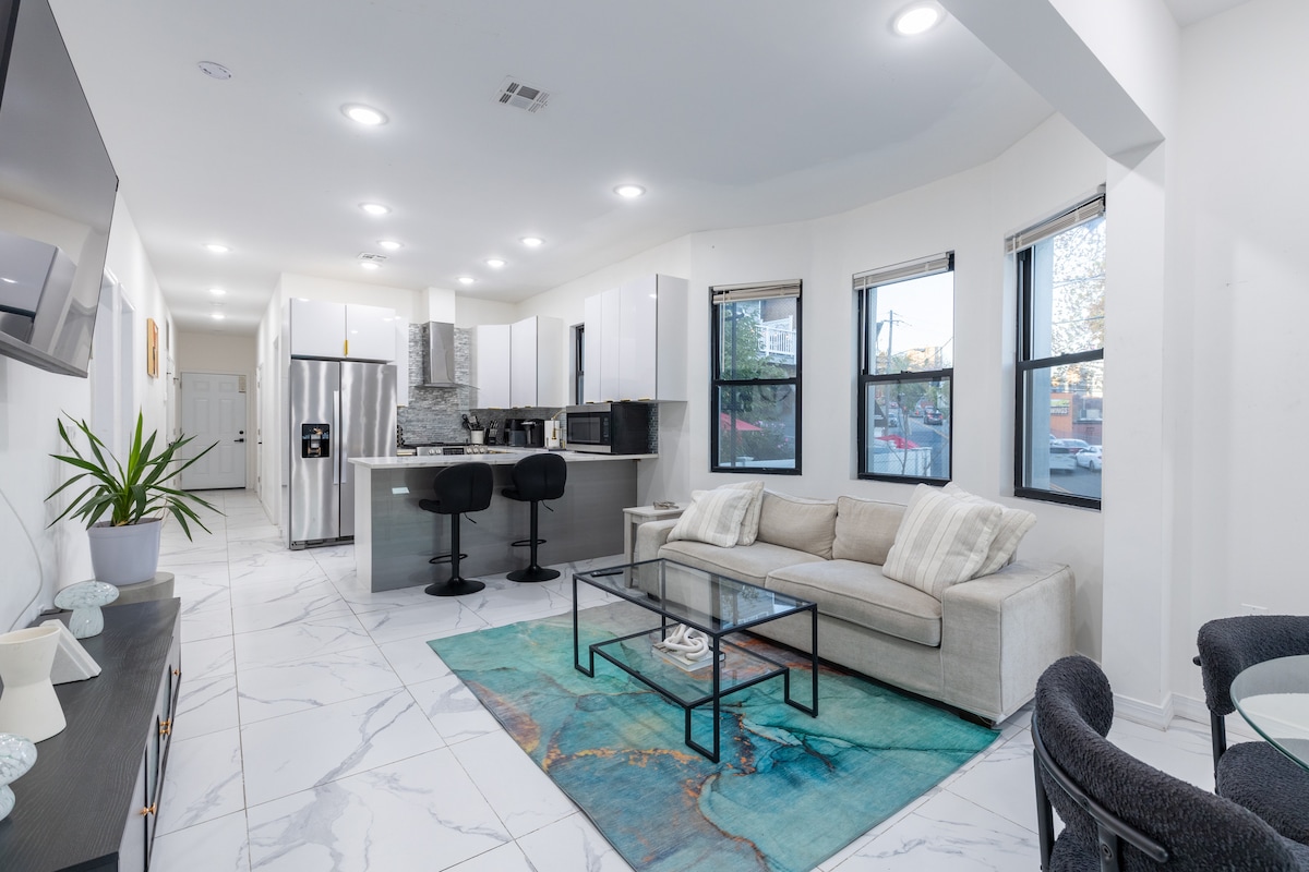 Appartement entièrement rénové au 1er étage avec 2 chambres, 1 salle de bain avec une entrée privée, un revêtement de sol en vinyle de luxe, un aménagement ouvert moderne et une cuisine entièrement équipée. Comprend Roku TV et 1 place de parking. Idéalement situé à 15 minutes de Manhattan, avec un arrêt de bus à 2 pâtés de maisons offrant un accès direct à Times Square. Proche du SoJo Spa, du MetLife Stadium, de l'American Dream Mall et de l'aéroport de Newark. Interdiction de fumer, pas de visiteurs extérieurs, rassemblements modérés autorisés jusqu'à 23h, et ne convient pas aux enfants de moins de 2 ans.