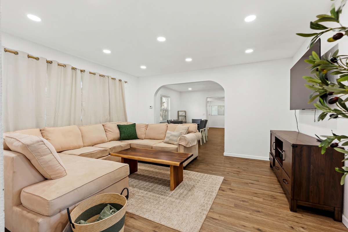Bienvenue dans notre duplex récemment rénové dans le centre-ville de Bakersfield ! Parfaite pour les voyageurs d'affaires et les petites familles, notre maison confortable se trouve à quelques pâtés de maison des restaurants populaires du centre-ville comme The 18hundred et Locale Farm to Table. Commencez votre journée avec un café exceptionnel de Smitten Café ou Blue Oak Coffee Roasting et promenez-vous le long des charmantes rues bordées d'arbres avec des maisons historiques, où vous pourriez apercevoir notre troupeau de perruches vertes sauvages du quartier. Que vous soyez ici pour le travail ou le plaisir, notre