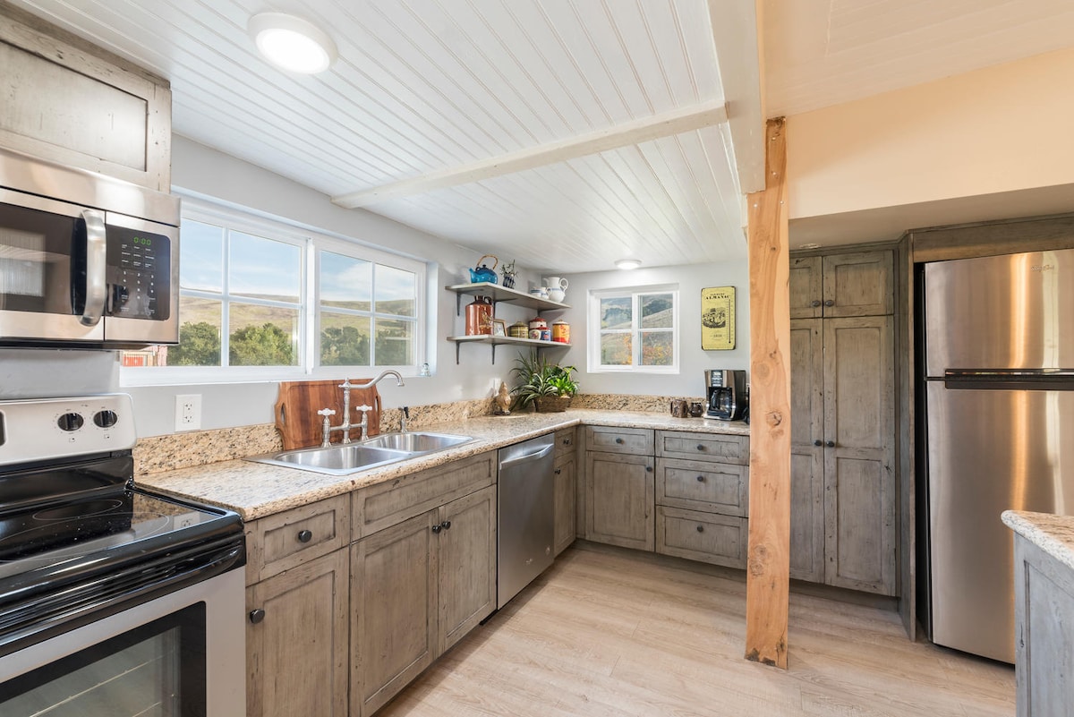Come experience something unique and magical in our turn-of-the-century remodeled farm house. This rustic home lies within a 400 acre ranch located just over the mountain from the City of SLO. Allow yourself to travel back in time while you enjoy this 2 bedroom, 1 bath 1000' home which comfortably sleeps 4 guests in its king and queen beds. The newly remodeled kitchen with its granite counters and modern appliances is fully equipped. Relax outside on the flagstone patio or wrap-around porch.