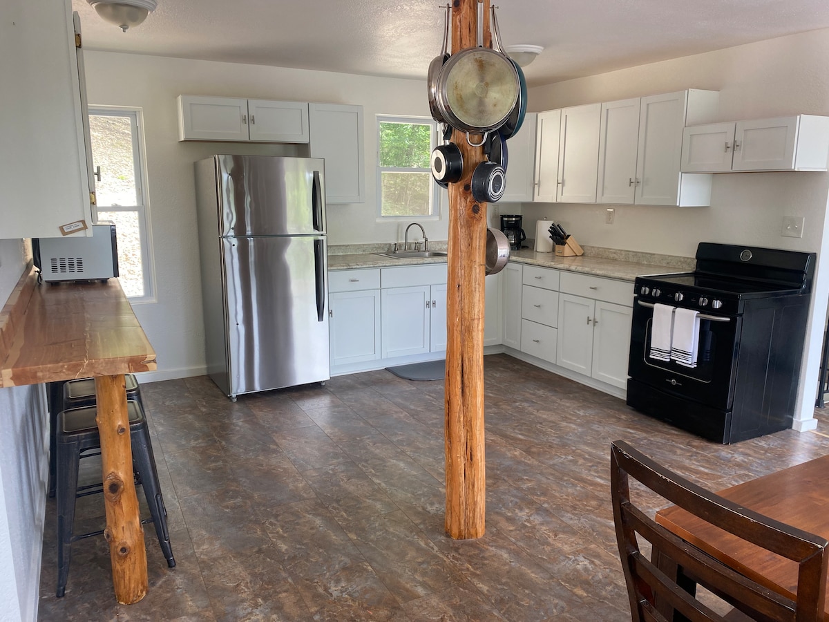 Looking for a place to relax and recharge? Have a seat on our wrap around deck and take in the views of our 26 acres. Quietly nestled in the woods, but still within driving distance of Truman Lake and Lake of the Ozarks, this brand new cabin will provide the ultimate escape. Take a relaxing bath in our deep soaker tub, cuddle up by the fireplace with a good book, or watch for our many local deer from the porch. Perfect for a family vacation, romantic getaway, or a trip with friends.