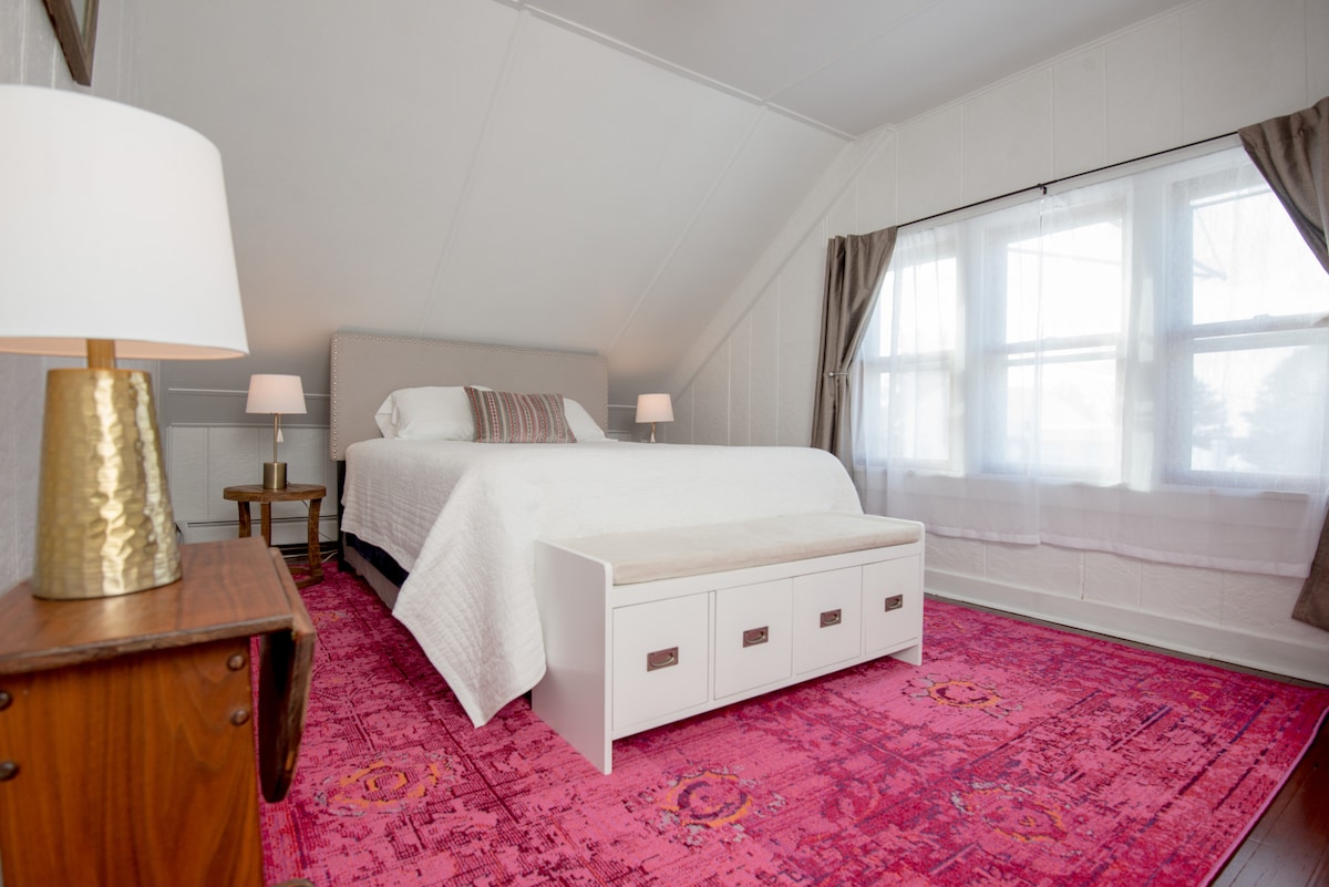 Situé littéralement au cœur d'Egg Harbor, à quelques pas de nombreux restaurants, boutiques, parcs et du port. C'est l'endroit idéal pour séjourner si vous souhaitez garer votre voiture et avoir tout ce dont vous avez besoin à distance de marche. Petite terrasse ensoleillée pour siroter du vin à l'extérieur. Endroit de deux chambres avec un salon confortable, un espace pittoresque pour boire du thé et une cuisine complète. Les produits de base fournis tels que le café et le thé, l'huile de cuisson, le shampoing, les savons et les serviettes.