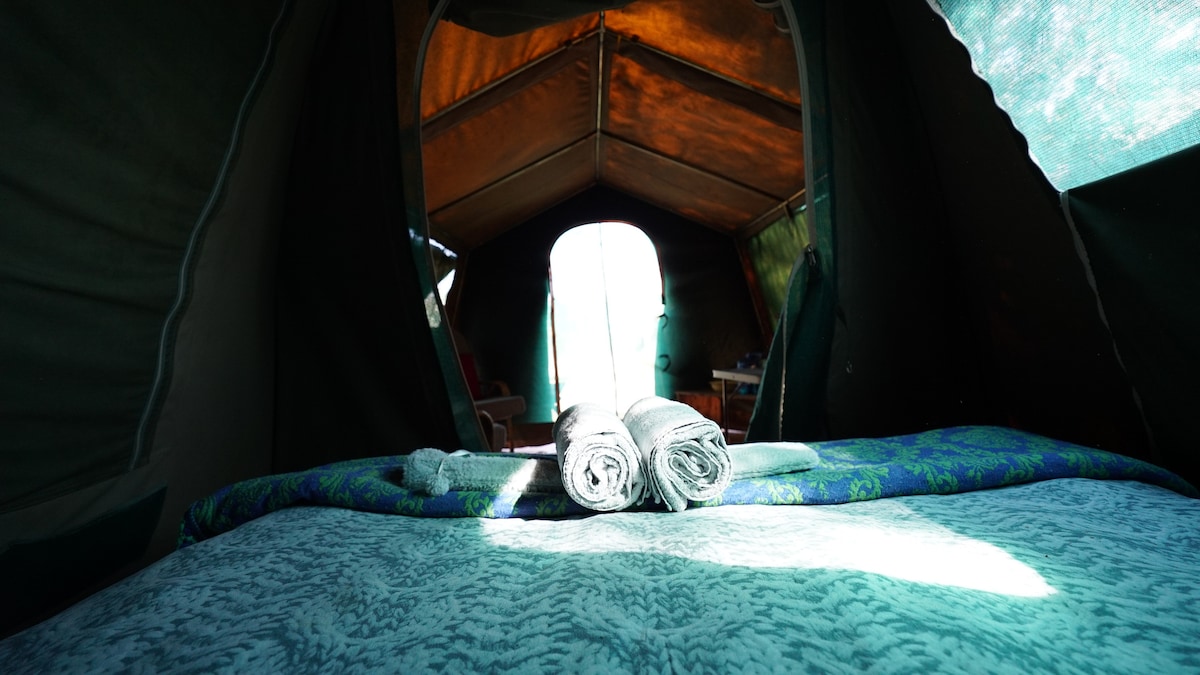 Échappez à la ville en moins d'une heure et réveillez-vous au bord de l'eau au Brandbach Retreat. La tente Mustang est de la pure magie : - Lit Queen Size avec linge de lit de qualité hôtelière - Salle de bain privée avec douche chaude - Immense terrasse en bois surplombant littéralement le lac - Barbecue extérieur + brasero - Éclairage et points de recharge à énergie solaire (pas de délestage) Commentaires des voyageurs : « Le meilleur sommeil que j'ai eu depuis des années » · « Le reflet du lever du soleil sur le barrage est irréel » · « Nous ne voulions plus repartir »