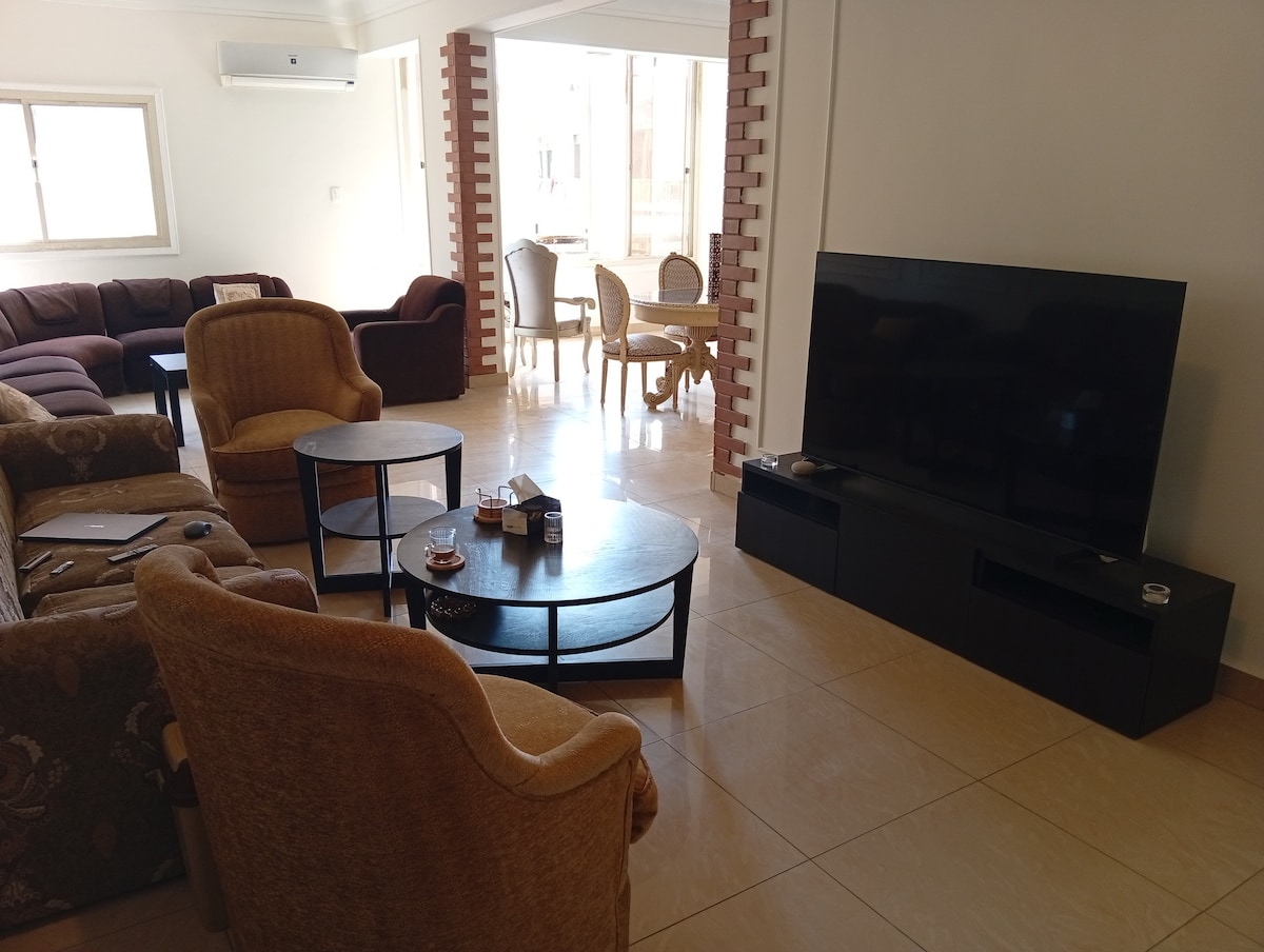 Des RÉDUCTIONS à la semaine et au mois sont disponibles. Un appartement ENSOLEILLÉ entièrement meublé. Les chambres sont récemment meublées, climatisées, bien CONÇUES, avec toutes les commodités. Cafés, restaurants, supermarchés et pharmacies sont tous à proximité. Avec son emplacement incroyable dans le centre du Caire, à seulement 1 min du Ring, à 2 minutes de Carrefour et à proximité de nombreux sites magnifiques du Caire. Une QUALITÉ HÔTELIÈRE avec un logement comme le confort offert à UN PRIX RAISONNABLE. Les hommes et les femmes ne sont autorisés ensemble que s'ils sont mariés.