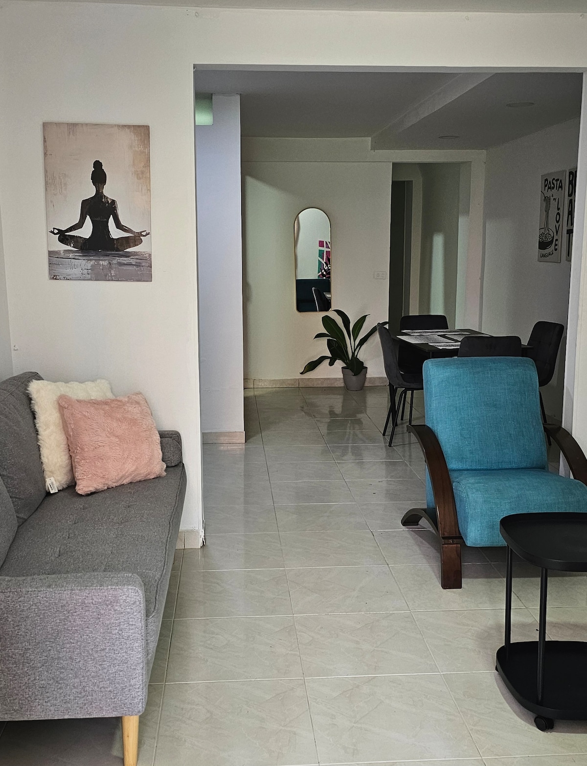 Disfruta una estancia con estilo en este apartamento moderno, diseñado para brindarte comodidad, elegancia y funcionalidad en cada detalle. El espacio cuenta con una sala moderna con Smart TV, un escritorio ergonómico ideal para trabajar o estudiar, y una decoración con toques cálidos que te harán sentir como en casa. La cocina está totalmente equipada y en la zona de lavado, contamos con lavadora-secadora. Con fácil acceso a restaurantes, centros comerciales y vías principales.