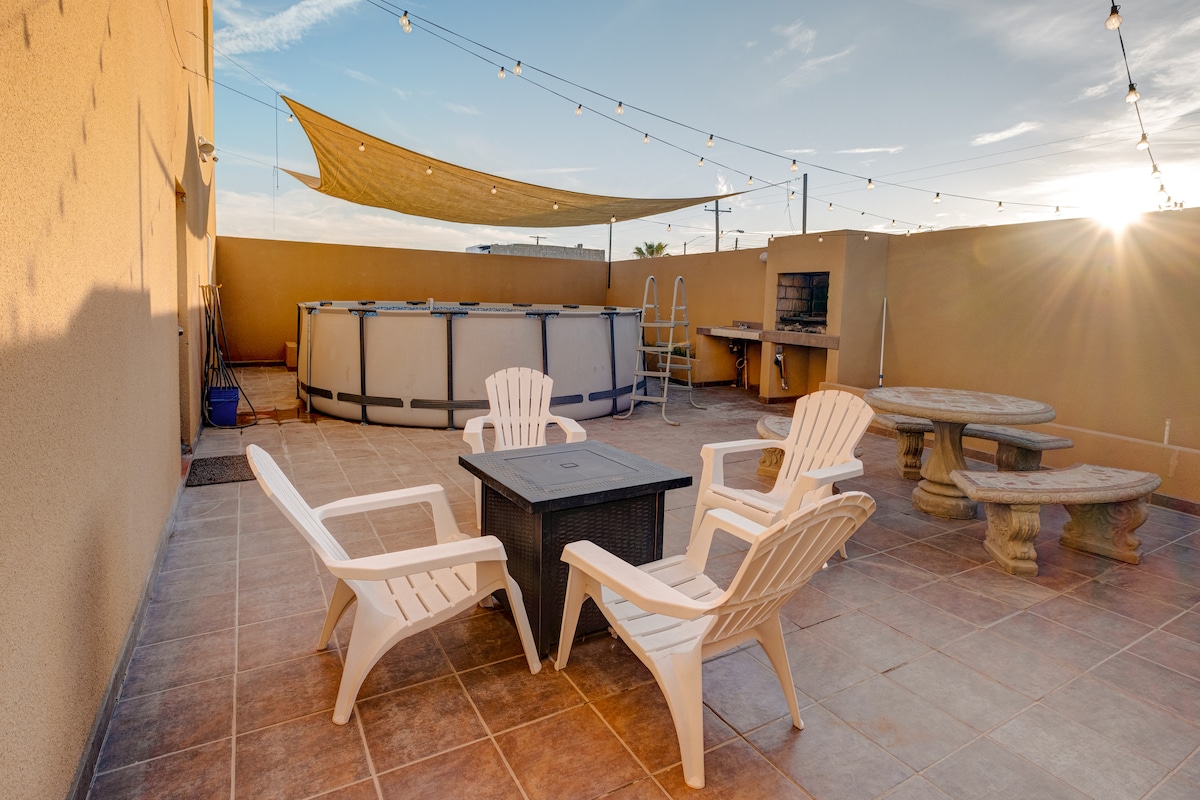 No cleaning fee—total price is what you pay! Airbnb fees are on us. Pet friendly (1,000 MXN/stay). Base price includes up to 6 guests; add more for a small nightly fee per guest. Sleeps up to 16 in 3 bedrooms, plus cots and a child-sized sofa. Private pool, BBQ, rooftop terrace, and secure garage. 4 min drive to Malecón, beach, and restaurants. Perfect for families, friends, and groups seeking a fun, relaxing San Felipe escape.