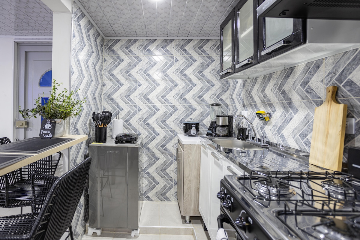 Loft confortable, central et sûr ! À seulement 10 minutes de l'aéroport et 5 minutes de la gare routière d'El Salitre. Parfait pour les couples à la recherche d'intimité et de confort. Profitez de votre propre terrasse extérieure meublée, parfaite pour vous détendre et vous rafraîchir. Vous serez entouré de plus de 15 restaurants, épiceries, boulangeries, banques et 2 centres commerciaux. Idéal pour votre processus de visa américain, CAS à seulement 7 minutes.