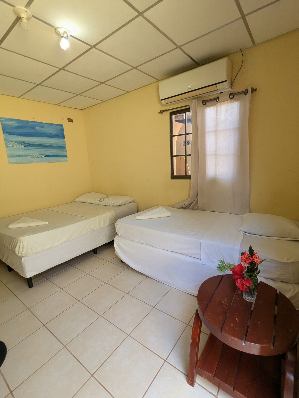 Chambre 8 de l'Hôtel Gracia – Charme côtier à San Juan del Sur À quelques pas de la place de l'église, l'Hôtel Gracia est une famille avec neuf chambres propres, confortables et confortables. Mélange d'âme nicaraguayenne et de racines irlandaises, profitez de la vue sur le coucher du soleil sur le Pacifique et sirotez un café sur le balcon en écoutant le carillon de la cloche de San Juan Bautista. Parfaits pour les familles, les nomades numériques et les aventuriers, nos espaces aérés offrent une retraite chaleureuse et sûre près de la baie et de l'aire de jeux. Détendez-vous, explorez et échangez dans ce joyau côtier accueillant !