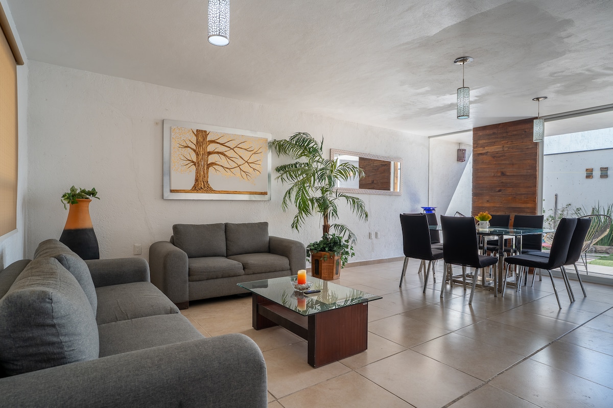 Welcome to our modest home, equipped with the basics to make your visit comfortable and so you can feel at home - Very close to industrial parks such as PIBQ, PTIQ, FINSA, PIMSA, etc. - Very close to downtown Querétaro and main avenues, Corregidora Stadium, the convention center, Ecocentro, Centro Sur, Villa Conin Hall, and the Autodromo. - 30 minutes from Querétaro Airport.