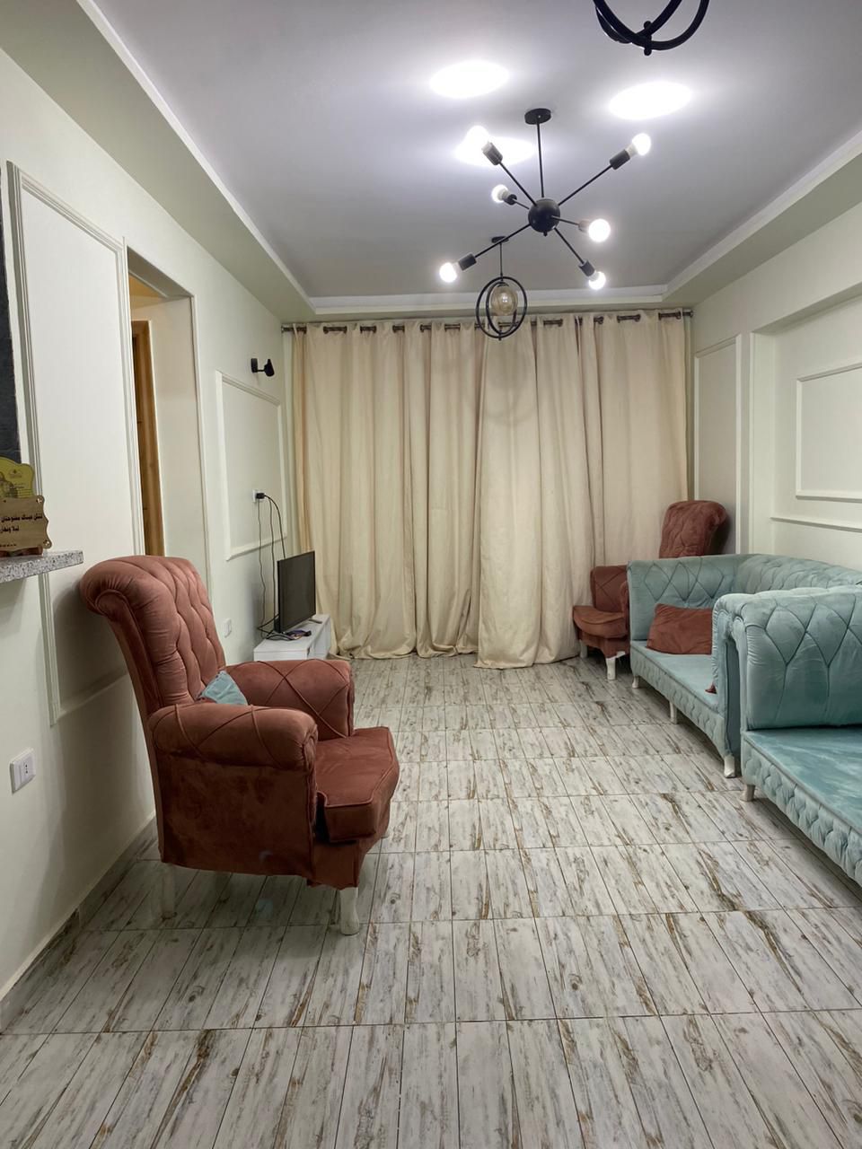 Apertment contain of 2 bedrooms . Living room . Blokny . Kicten . Bathroom with a tub