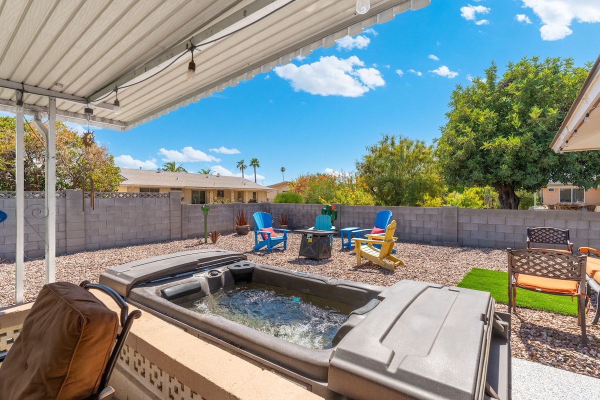 Bienvenue dans la maison de Ruthie ! Maison des années 70 avec toutes les bonnes vibrations. Avec 4 chambres funky et 2 salles de bains, nous avons de la place pour toute la famille. Notre système de jeu rétro fera que tout le monde aura envie de jouer. Vous pourrez vous détendre dans notre jardin avec notre jacuzzi bouillonnant, notre coin repas et notre fresque murale digne d'une photo. Destinations à proximité : State Farm Stadium (AZ Cardinals) – 4 miles Desert Diamond Casino - 3,5 miles Top Golf - 4 miles Westgate Entertainment District - 4 miles