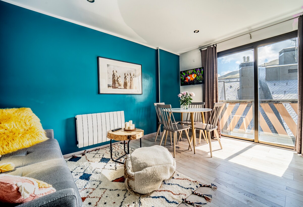 Grand studio lumineux, spacieux et tout confort, avec tout ce dont vous avez besoin pour séjourner en Cerdagne. Belle vue partielle sur la vallée. Situé en plein centre-ville de Font-Romeu, dans la rue principale commerçante, il a l'emplacement idéal pour profiter de votre séjour sans toucher à votre voiture. Draps et serviettes inclus. CAUTION DE 40€ POUR MENAGE. SI LES VOYAGEURS SOUHAITENT FAIRE LE MENAGE EUX-MEMES, LA CAUTION LEUR SERA RENDUE APRES VERIFICATION.
