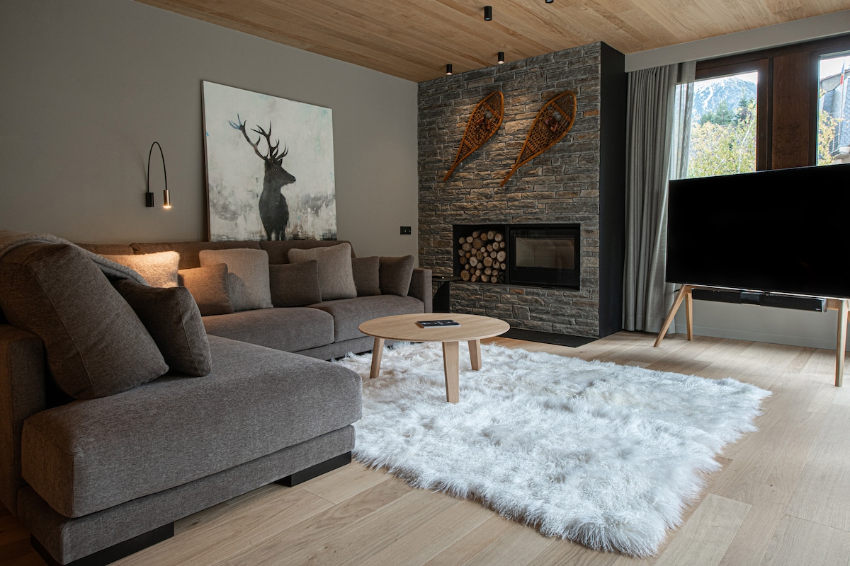 Cet hébergement unique a sa propre personnalité. Appartement pour 6 personnes. Avec terrasse. Situé au pied des pistes de ski. Parking privé gratuit. Il a tous les éléments pour un séjour confortable et accueillant. Il dispose de 3 chambres. L'une d'elles est équipée pour le télétravail. Cuisine, salle de bains, salon et terrasse dans la chambre principale. Télévision de 60 pouces, avec différentes plateformes de divertissement. Vous vous sentirez comme dans une cabane entourée par la nature et la neige.