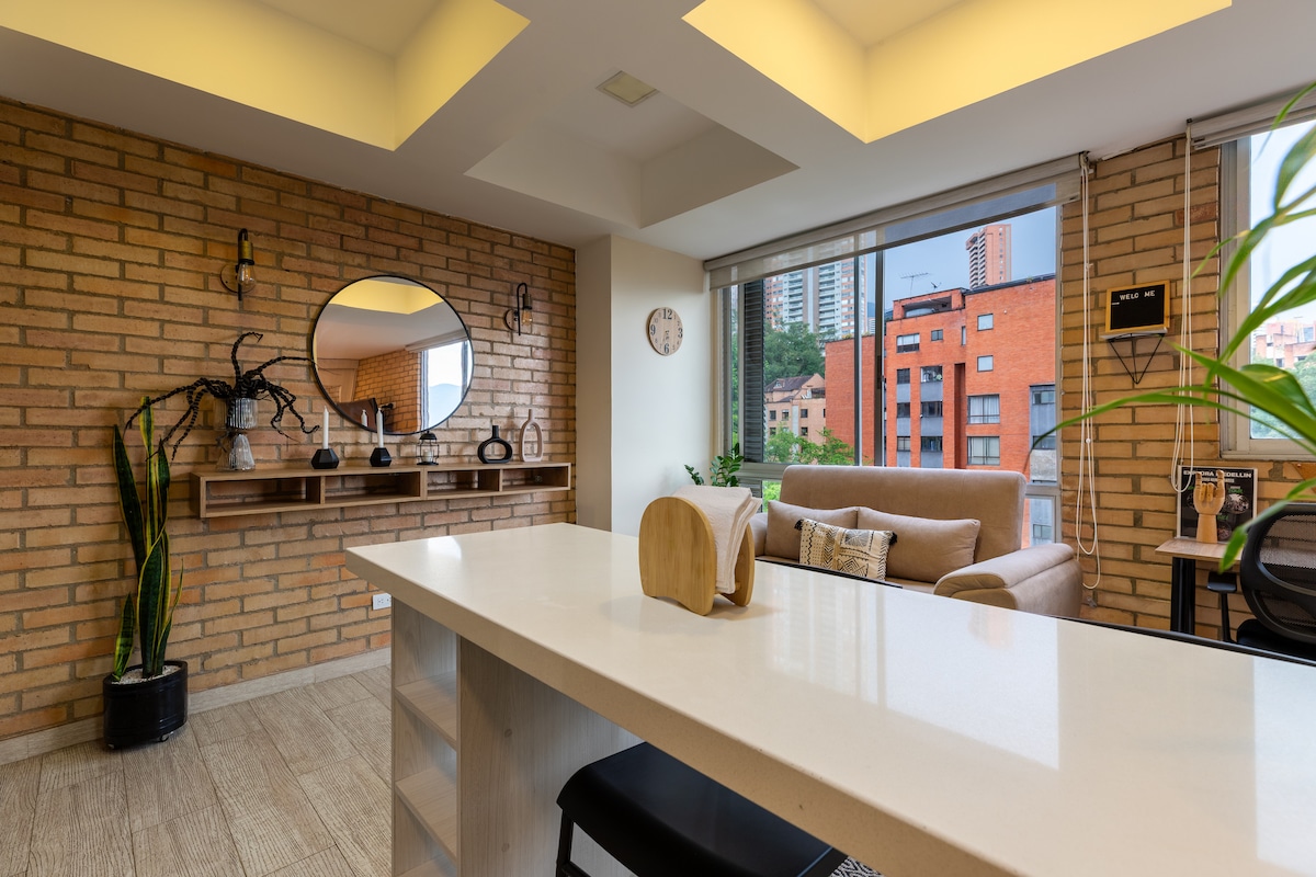 The Carboneros suite is a stunning masterpiece of design with a classic touch of Colombia. Located in the heart of Park lleras in one of the safest areas in all of Medellin. Innovative indoor living space gives way to high ceilings, gorgeous concrete floors, decadent designer furnishings a perfect for entertaining for your special visit. Lleras Park is only 2 minutes away walking and Provenza a 5-minute walk as well. The building has security 24/7