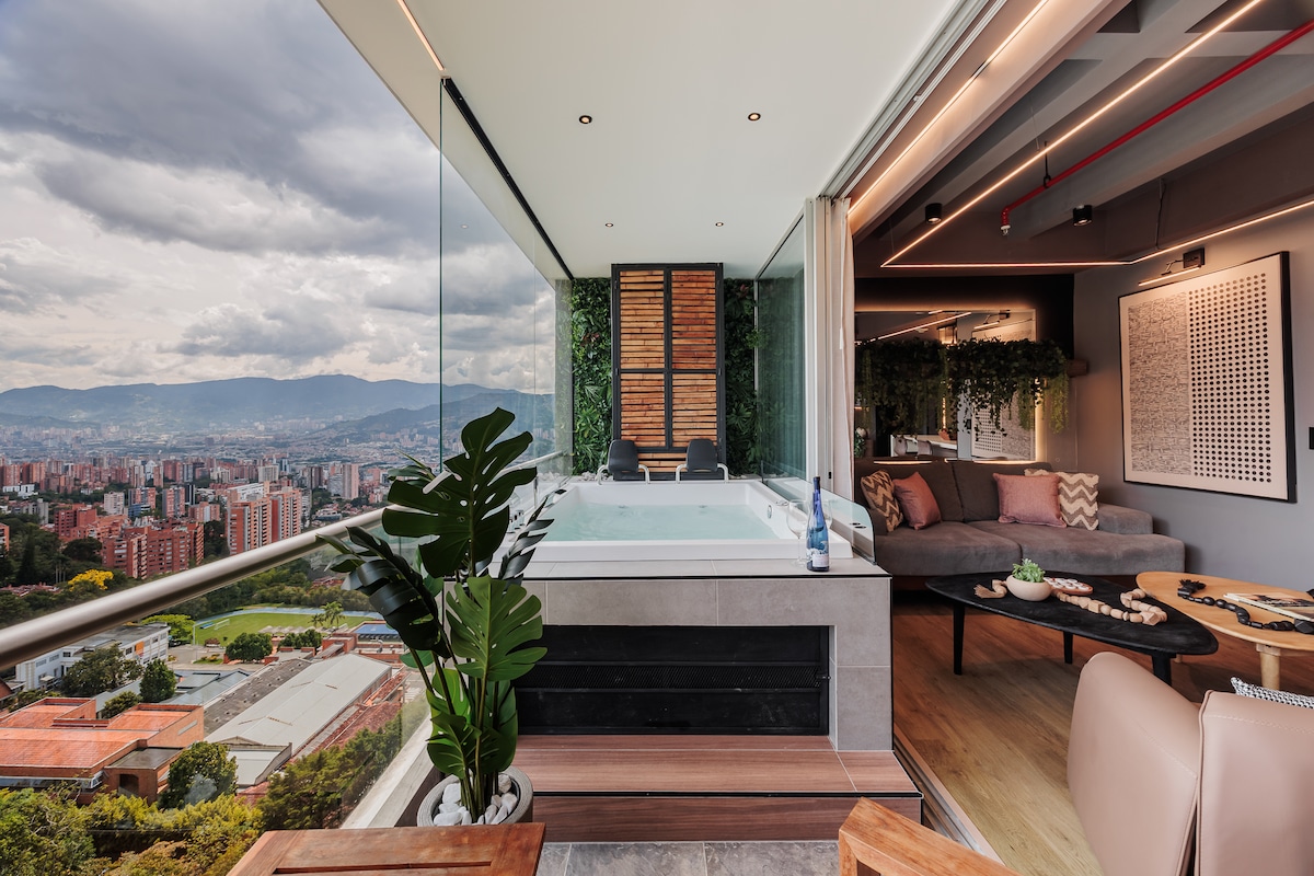 Vue à 1 million de dollars avec piscine, jacuzzi et salle de sport à El Poblado