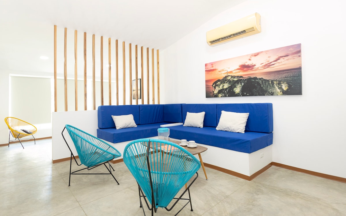 Profite de la simplicité de cet hébergement calme et central. Il est très proche du centre commercial Arrecifes à Rodadero, à proximité de Farmatodo, Ara et Olímpica. La plage de rodadero est située à moins de 5 minutes à pied. Il a de très bonnes finitions, un lit Queen, TV - Netflix, Wifi, salle de bain interne, espace pour cuisiner, climatisation. Très confortable et à un bon prix.