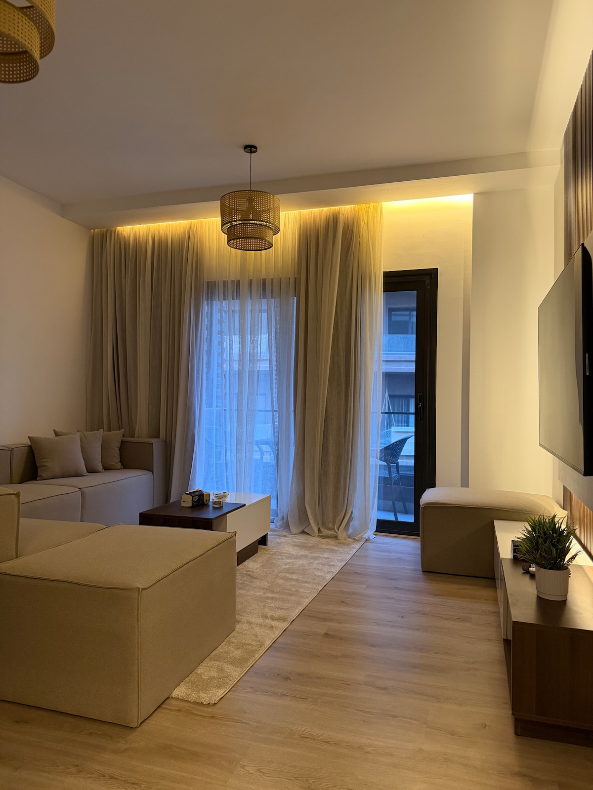 Profitez d'un séjour élégant et confortable dans cet appartement moderne d'une chambre à Privado Madinaty. Doté d'une cuisine ouverte entièrement équipée avec tous les éléments essentiels, d'une salle de bain magnifiquement conçue avec une douche élégante et des détails de type hôtel, et d'une atmosphère chaleureuse et accueillante dans l'ensemble du logement. L'appartement est impeccable, avec des draps frais et des serviettes propres fournis pour votre confort. Chaque recoin a été soigneusement préparé pour vous offrir une expérience 5 étoiles relaxante et entièrement prise en charge.
