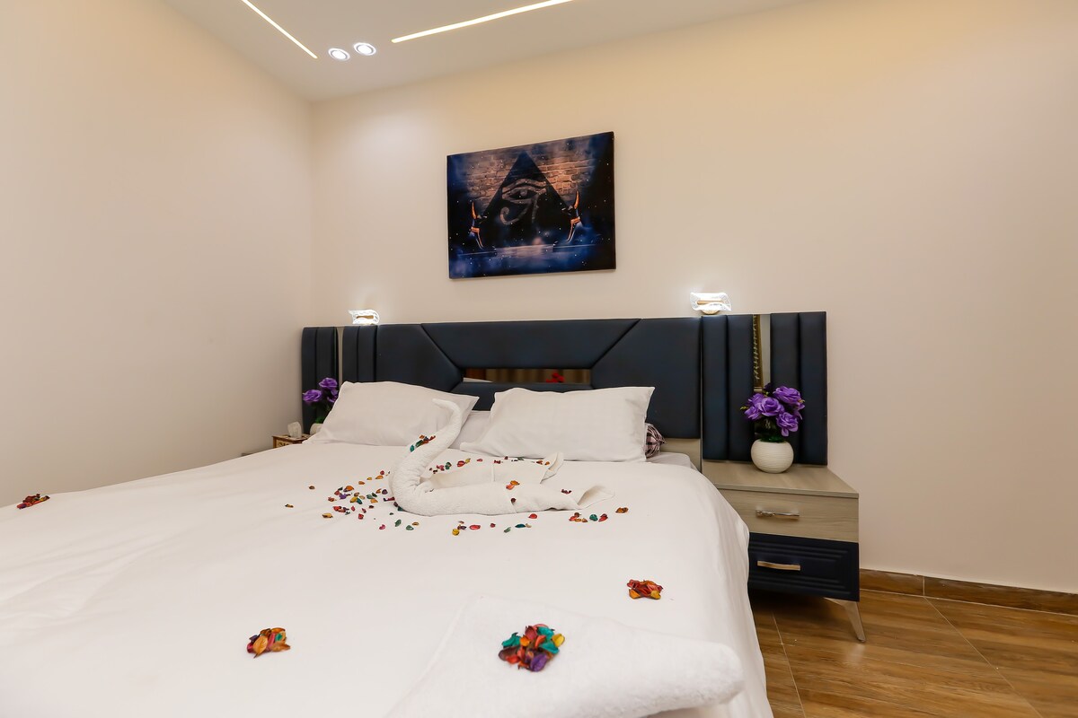 Located in the heart of ancient Giza, just steps from the Great Pyramids, our home offers a unique immersion into Egypt’s majestic past. Here, the silent grandeur of the pyramids meets the vibrant, buzzing energy of authentic local life. Amidst this legendary landscape and the warmth of Egyptian hospitality, we strive to make your stay truly unforgettable.