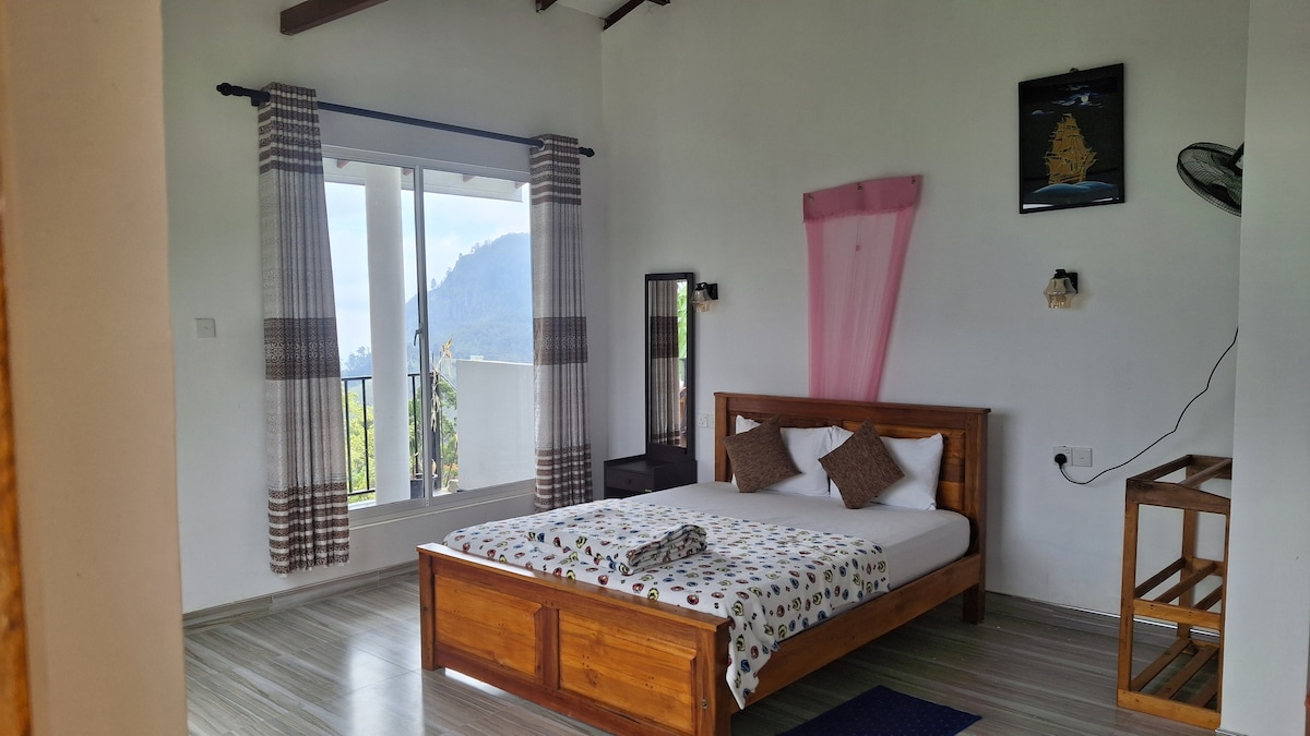 Welcoming to Ella panorama villa.A beautiful and Spacious Room waiting for you! . The family room offers 2 extra large bed, Fully temperd glass doors, air conditioning,Refrigerator, Electric Kettle and Tea and coffee amenities,a private entrance, a wooden terrace with panoramic mountain view as well as a private bathroom featuring a shower. And also 10min Walking distance to the nine arch bridge. We provide Free parking and High speed Wifi facilities.