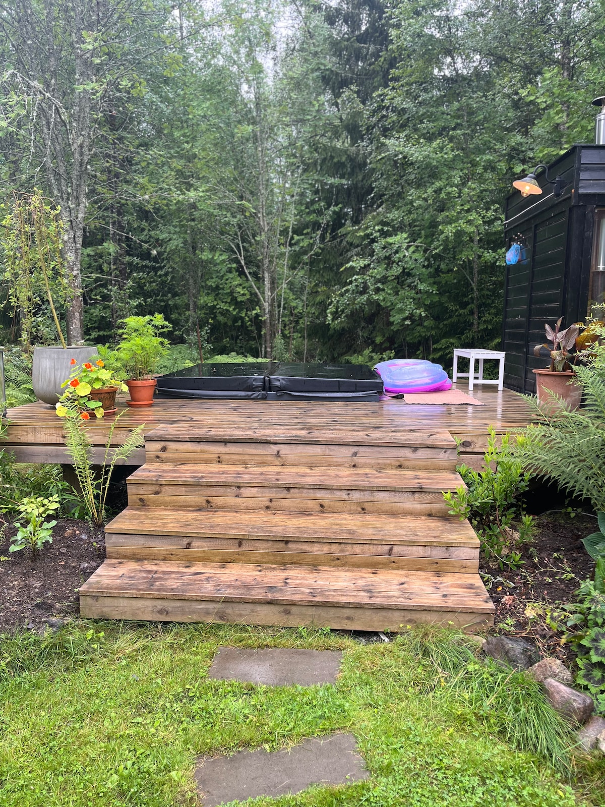 Nous espérons que vous apprécierez notre chalet fait maison - douche extérieure - Jacuzzi (toujours chaud) - Climatisation - réfrigérateur - cuisiner à l'extérieur sur un feu de camp - toilettes extérieures - vue fantastique sur la forêt et le fjord d'Oslofjord - parking à la cabane Cet endroit devrait être relaxant toute l'année, quel que soit le temps. Nous vous souhaitons un bon voyage et nous vous remercions de nous aider à garder l'endroit agréable. Ps. Peut-être que des chevaux viendront vous dire bonjour