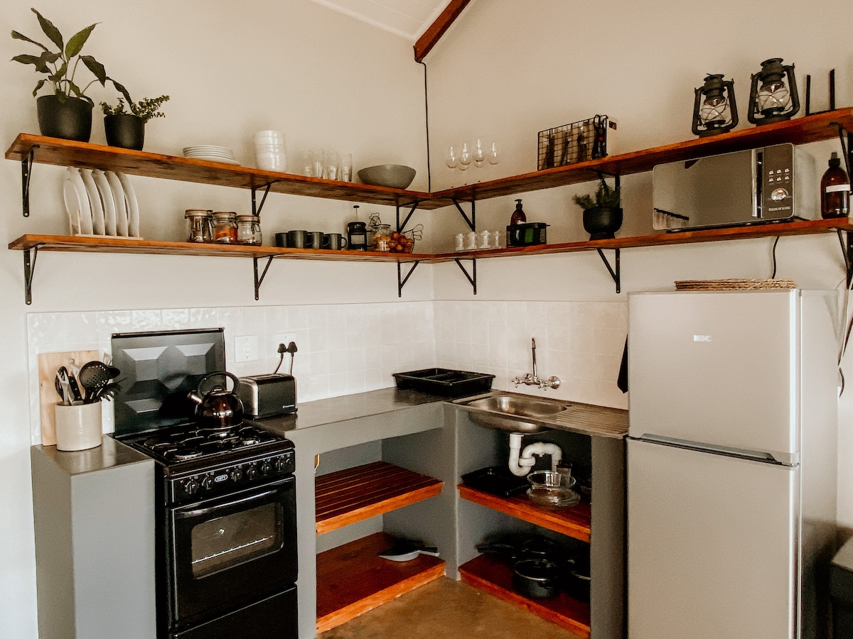 Niché en flanc d'une montagne surplombant les montagnes environnantes. Protea cottage est un chalet familial ouvert avec le cœur du chalet ouvrant sur une terrasse en bois – l'endroit idéal pour regarder le soleil couchant. Le chalet peut accueillir jusqu'à quatre personnes avec une grande chambre ouverte de style studio de style studio ouverte au rez-de-chaussée et un loft ouvert à l'étage avec deux lits simples, parfait pour une famille de 4 personnes. La conception du studio permet de passer de la cuisine bien équipée au salon et à la chambre.